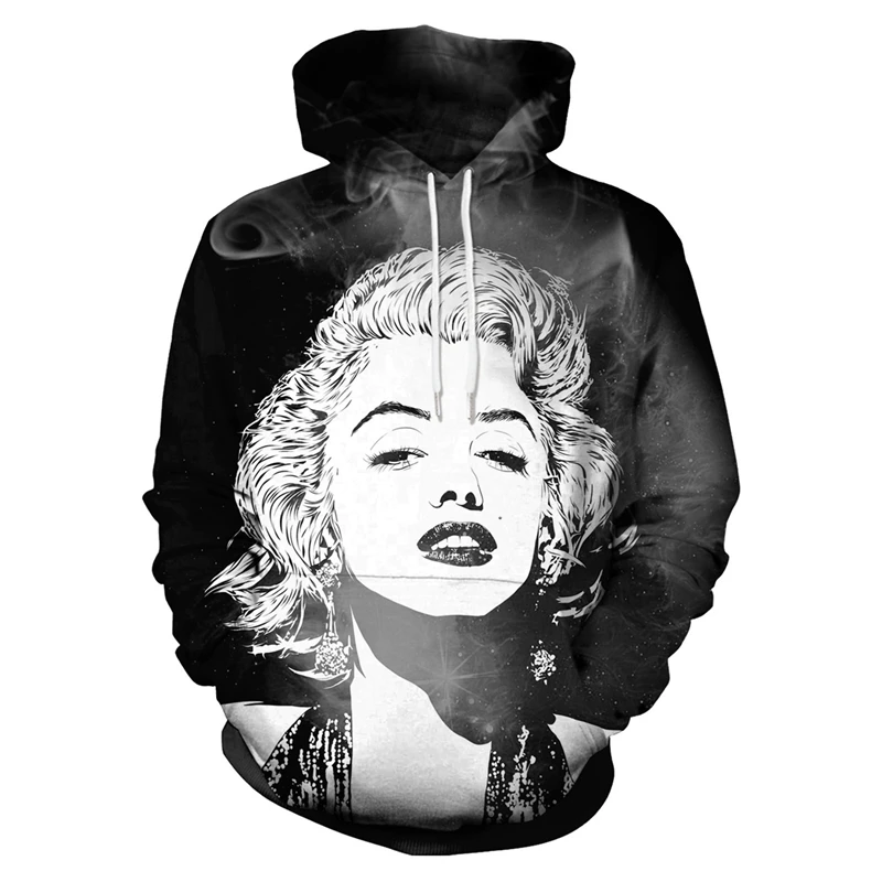 Новинка Осень-зима толстовки для мальчиков и девочек Мэрилин Монро с 3D принтом повседневные топы унисекс