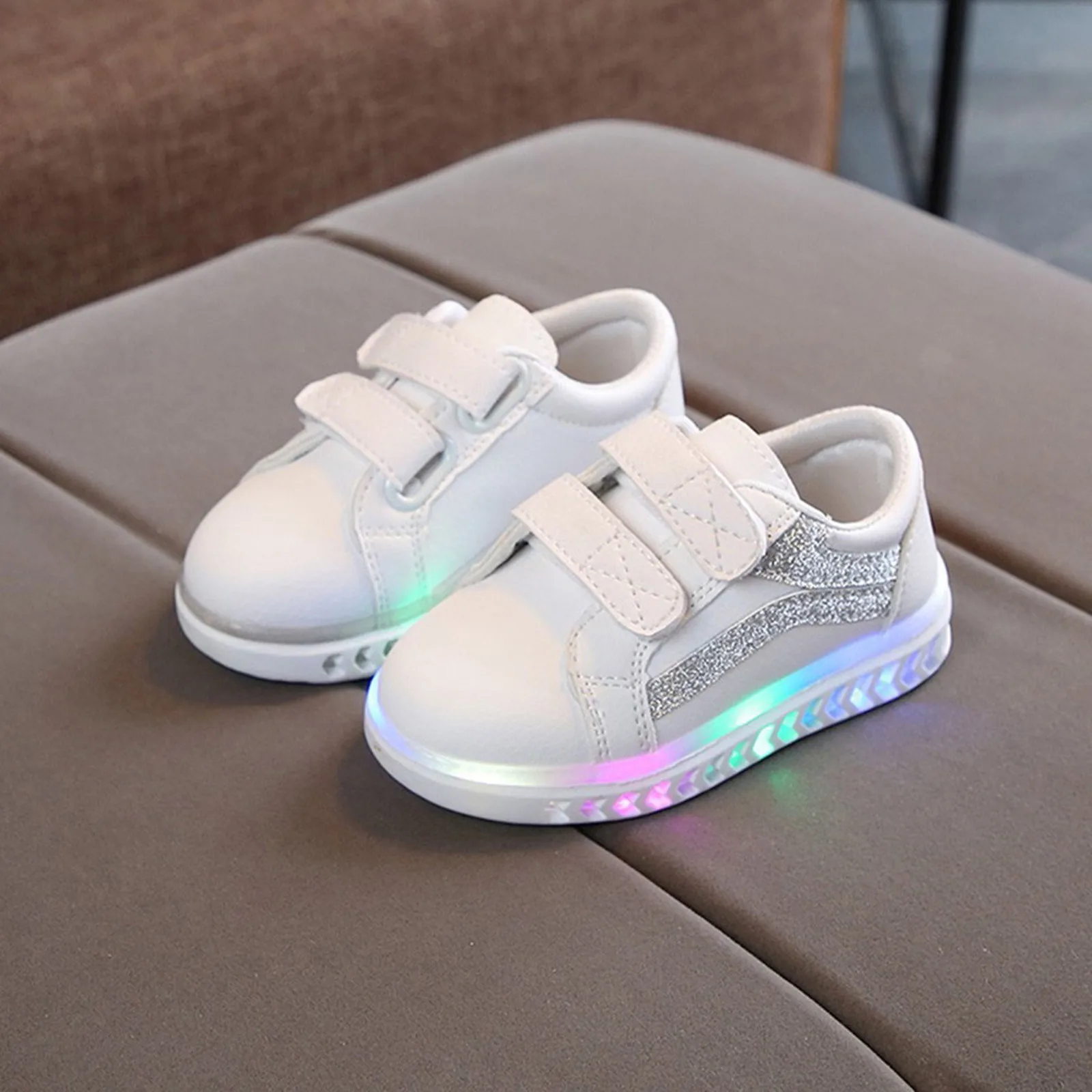 Кроссовки Детские со светодиодной подсветкой, полосатые, плоская подошва, светящиеся, повседневная спортивная обувь, 2021