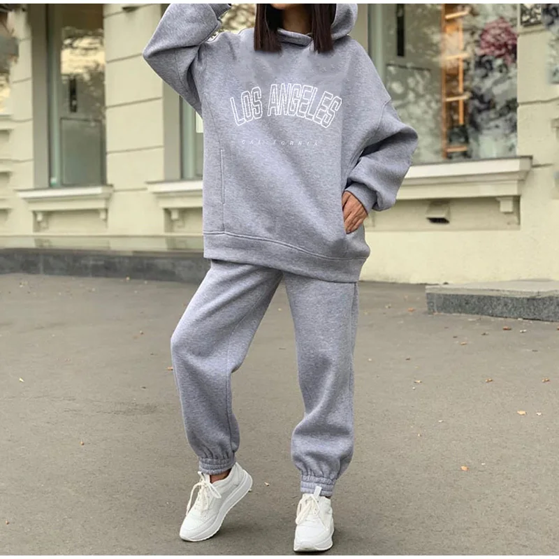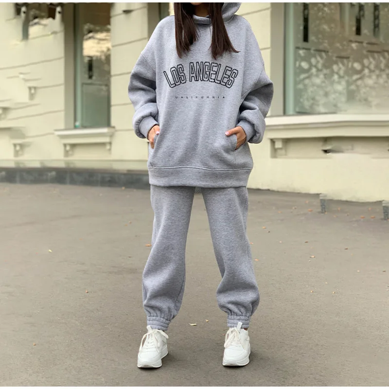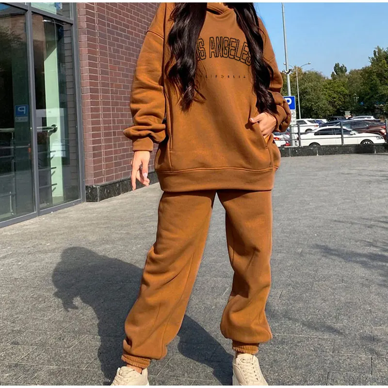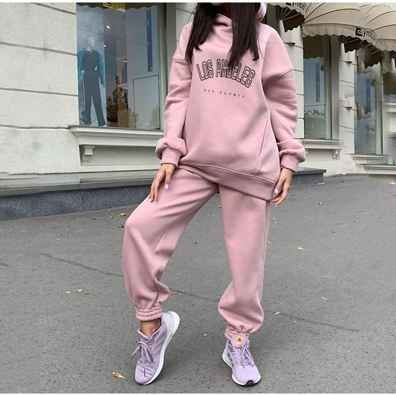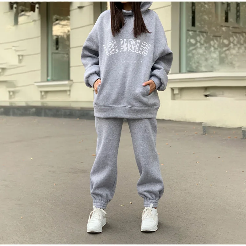 Комплект Спортивный женский из двух предметов, повседневный флисовый костюм с капюшоном и длинными рукавами, большие размеры, зимний костюм