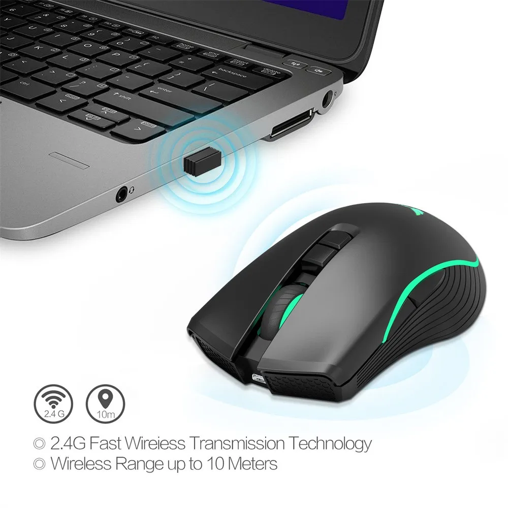 Беспроводной приемник, может быть получен в течение 10 метров Беспроводной, 2400DPl Высокоточный двигатель, точный опыт! Удобные Grip, наслаждайтесь 24G беспроводной технологией, подходят для повседневных игр.