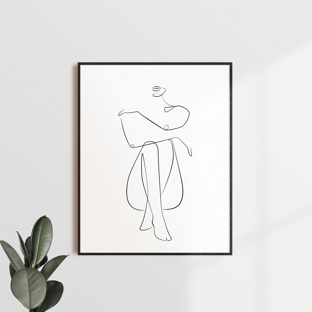 Женское Тело обнаженное Художественная печать абстрактная линия рис...