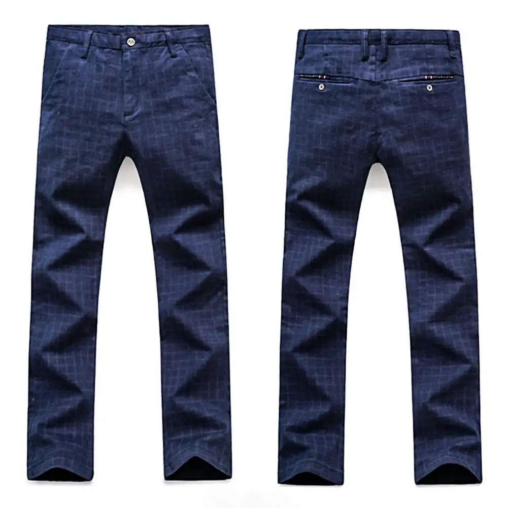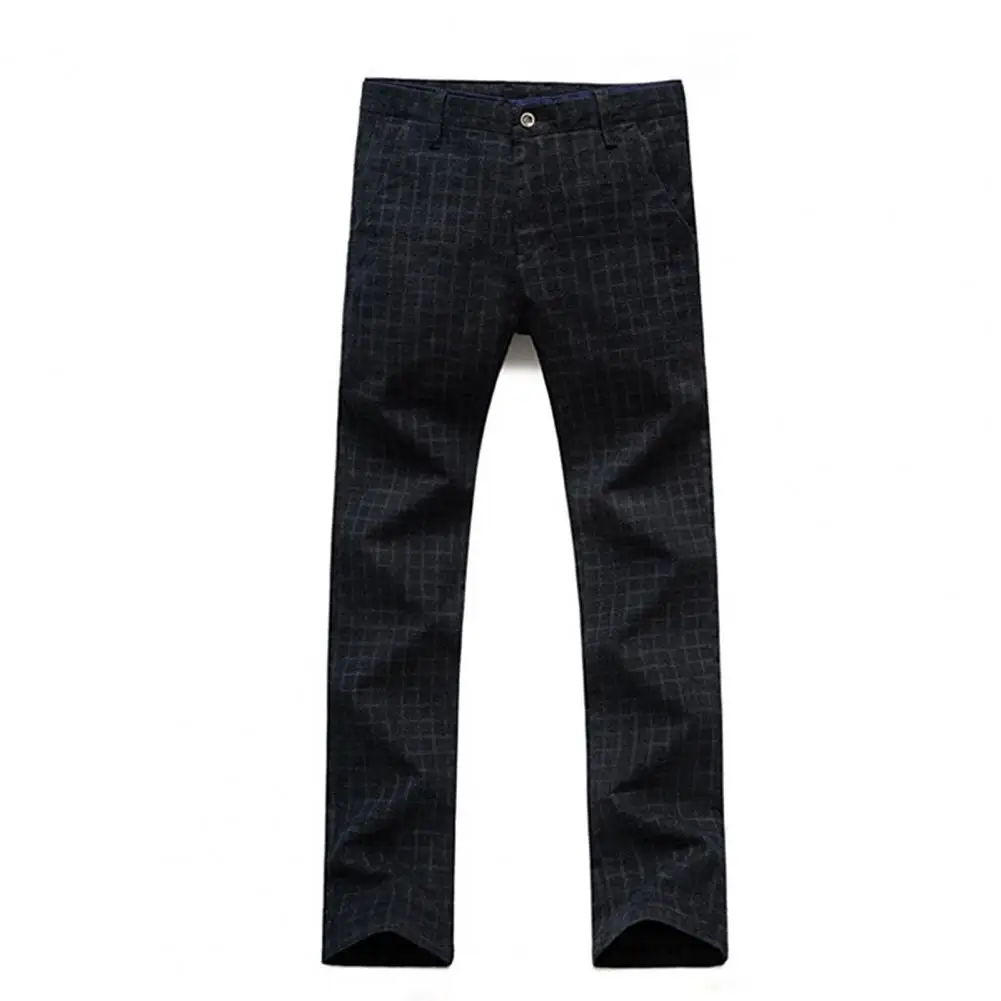 Мужские осенне-зимние клетчатые длинные узкие брюки, офисные классические брюки
