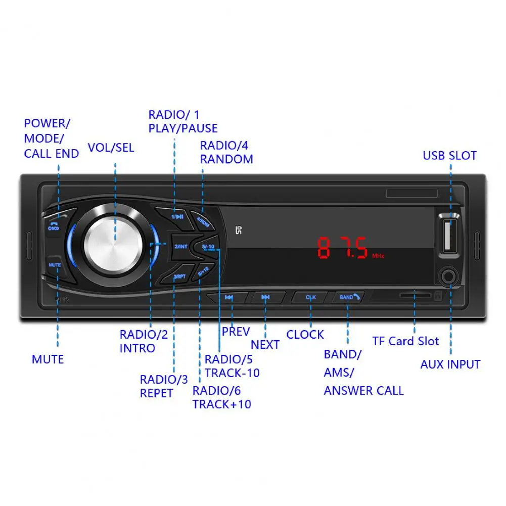 1030 12V Мощный Универсальный FM радио плеер компактный Bluetooth AUX U диск MP3 радио плеер для автомобиля центр Управление модификацииОписание:Так как он имеет несколько функций, вы можете использовать его, чтобы узнать последние условия дорожного движения, услышать финансовые отчеты, слушать музыкальные трансляции, или получить информацию в реальном времени или новости вокруг вас с его функцией fm-радио. И вы не будете чувствовать себя одиноко, когда вы едете один со многими радиостанциями сопровождать.Поддержка функций подключения Bluetooth, функция громкой связи, fm-радио, Зарядка телефона, отображение времени, карта памяти, воспроизведение музыки в формате MP3, дистанционное управление, чтение USB, вход AUX, память отключения питания и выход RCA, Автомобильный MP3-плеер очень мощный.Изготовлен из высококачественного пластика и металлического материала, Автомобильный MP3-плеер отличается прочностью и надежностью и обладает хорошей защитой от царапин и коррозии.Длина автомобиля MP3 плеер является 18,8 см, ширина 5,8 см, при росте 5,5 см.Он универсален для автомобилей 12 В и подходит для модификации автомобильного центра управления.Наименование товара: автомобильный mp3-плеерМатериал: пластик, металлБатареи: пульт дистанционного управления: Встроенный CR2025 150 мАч (в комплекте)Выходная мощность: 45 ВтBluetooth: поддержкаНапряжение источника питания: 12 ВТип: 1030Модель декодирования: TY3510Формат аудио: MP3Интерфейс USB: USB2.0Экран: цифровой трубчатый дисплейПоддержка входа: AUX/tf-карта/U диск/BluetoothFm-радио частота: 87,5-108,0 МГцСлот для карты: TF картаРадиочип: Встроенный чипЧип усилителя мощности: YD1028Модель экрана: светодиодныйВход AUX: ПоддержкаРазмер: 18,8 см x 5,8 см x 5,5 см/7.4inx2.28inx2.17inПримечания:Благодаря светильник и экрана Цвет Товара может быть s светильник ly отличается из-за характеристик монитора компьютера.Возможны незначительные отклонения в размерах из-за различных измерений вручную.Посылка включает в себя:1 х Кабель питания2 шт. разборки1 пульт дистанционного управления1 X Руководство пользователя1 х Автомобильный MP3-плеер