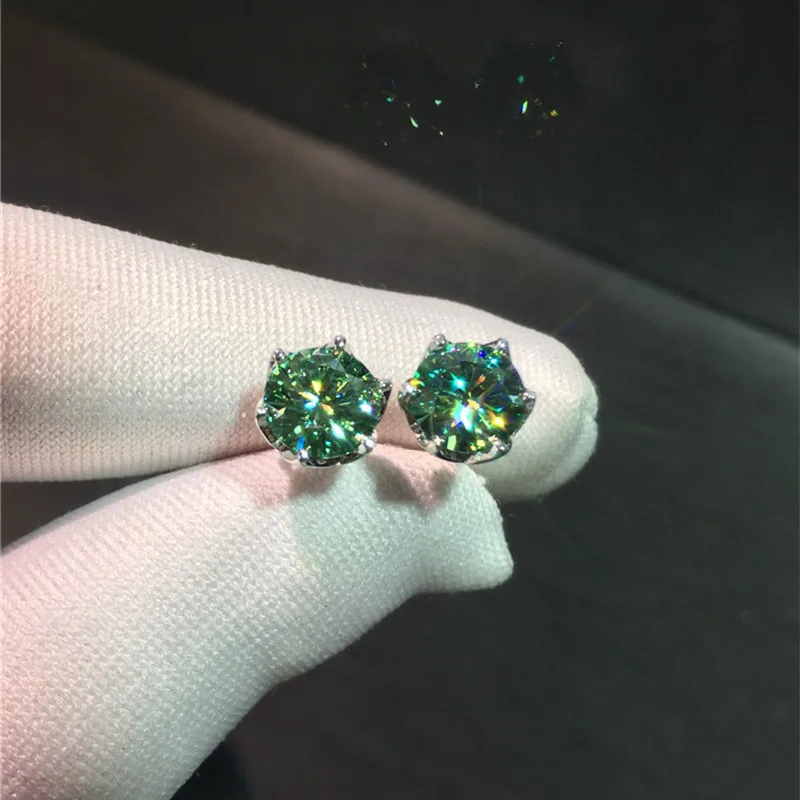 925 пробы серебряные круглые всего 2 ct Изумруд Серьги Женский 6 зубец Алмаз Тесты прошел зеленый серьги-гвоздики с муассанитом серьги