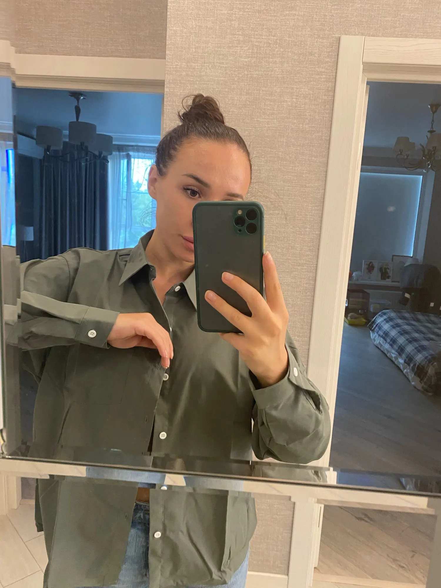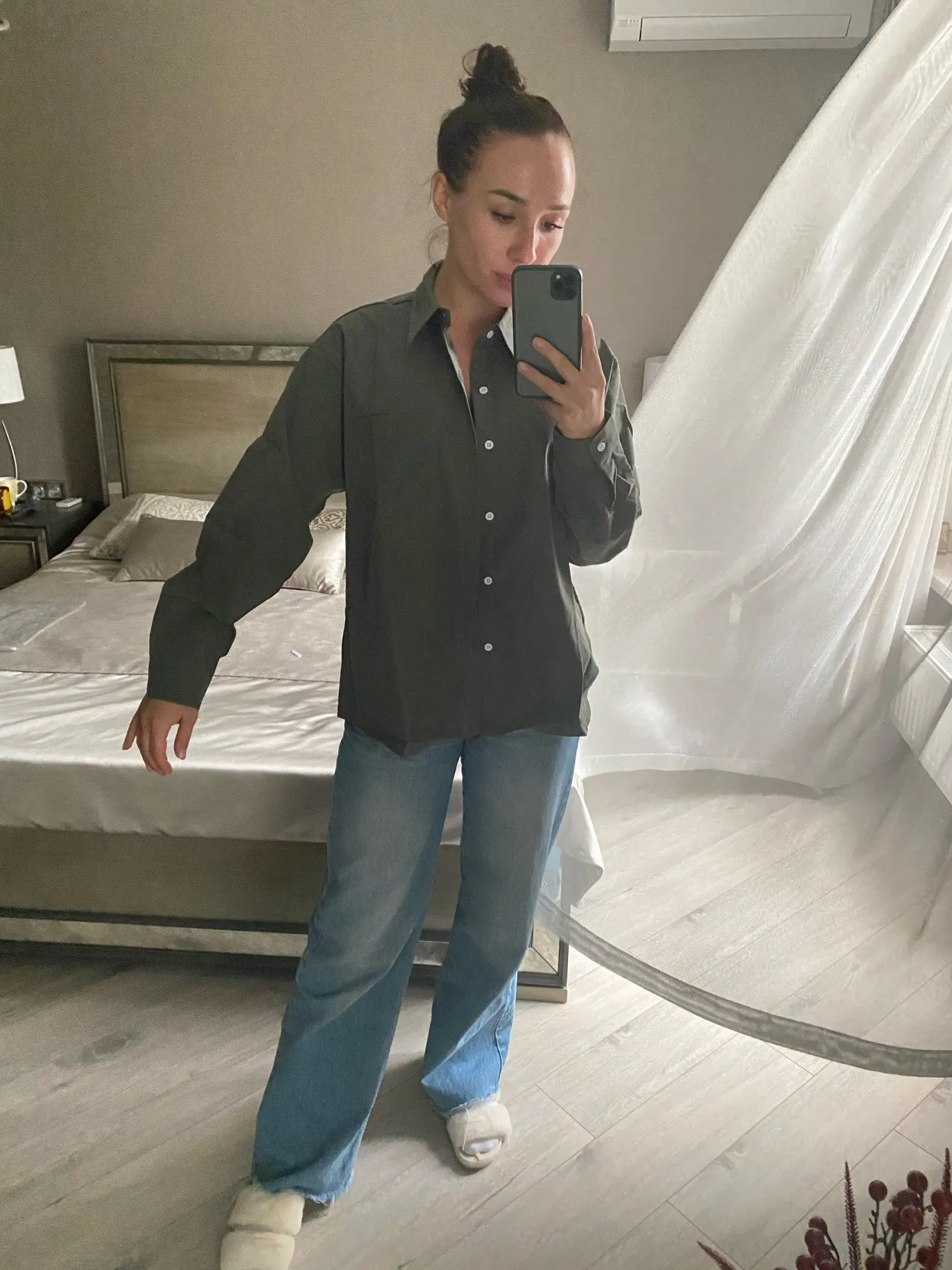 Рубашка хорошая за свои деньги, немного просвечивает. Ношу s, хотела чтоб был очень oversize, не скажу, что сидит именно так, скорее по размеру. В другом цвете закажу ещё больше на пару размеров.