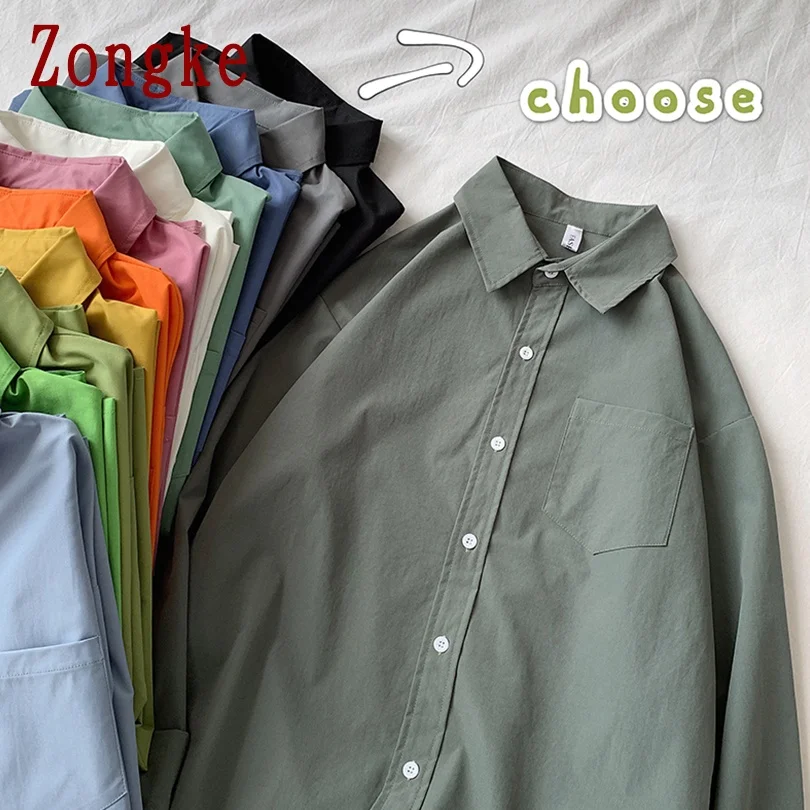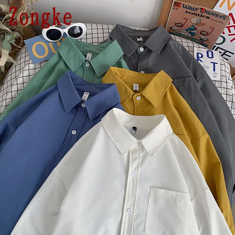 Однотонные рубашки Zongke для мужчин, одежда в Корейском стиле, мужские рубашки в стиле Харадзюку, Корейская одежда 5XL, весна 2022