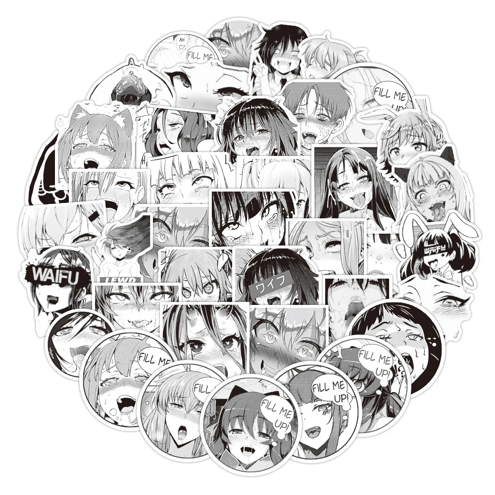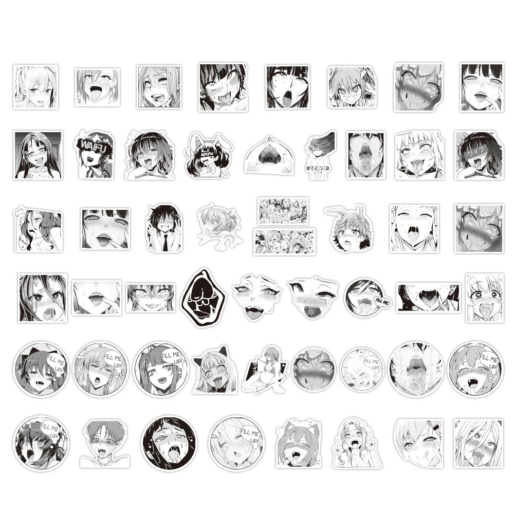 52 шт. черно-белые наклейки Hentai Waifu аниме сексуальные девушки персонажи стикеры аватарные для скейтборда телефона велосипеда мотоцикла