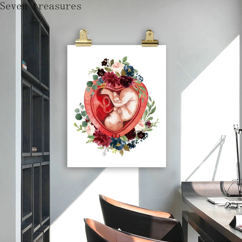 Беременность акварель цветочный принт настенное искусство акушерка подарок гинеколог Doula медицинский настенный Декор образовательный плакат холст картина