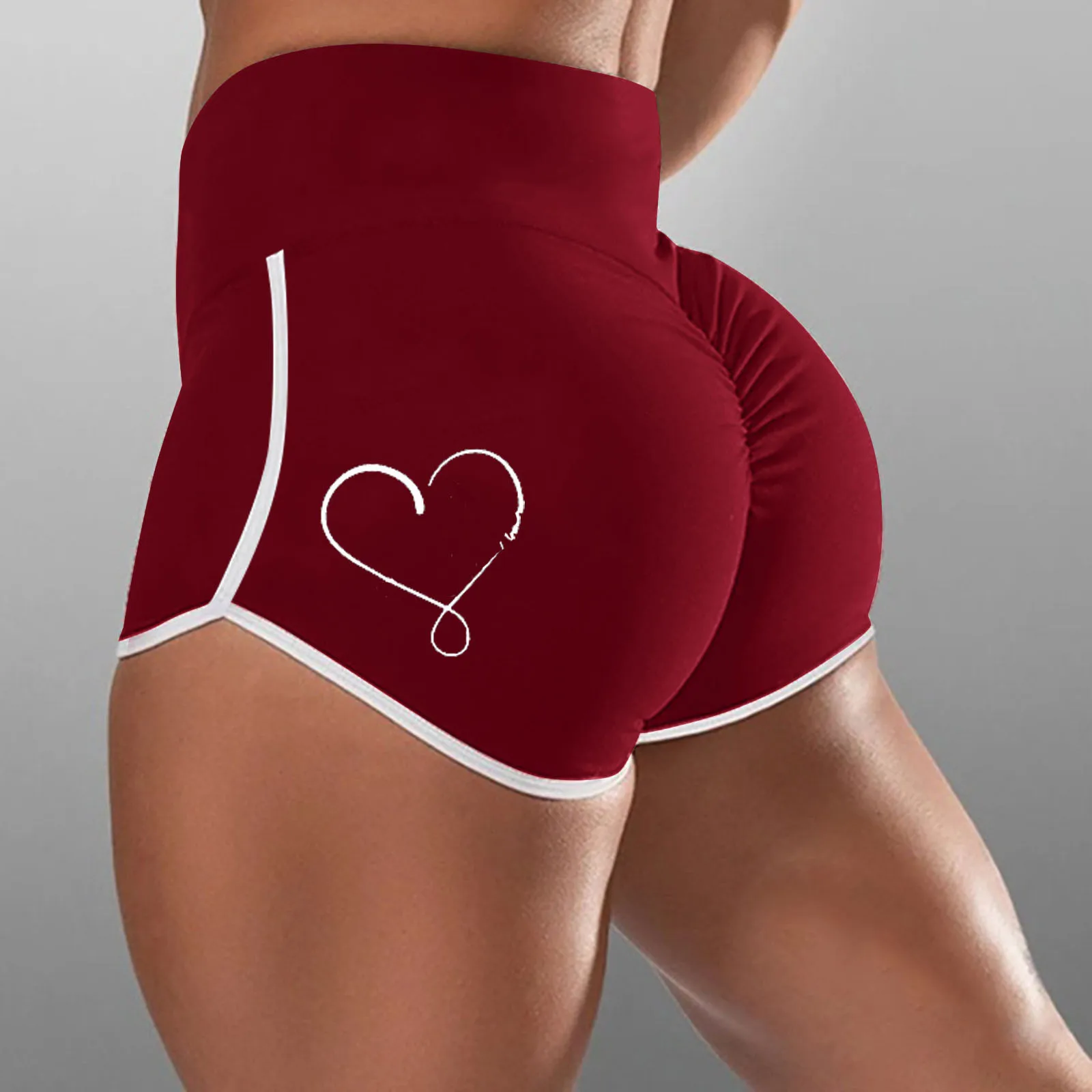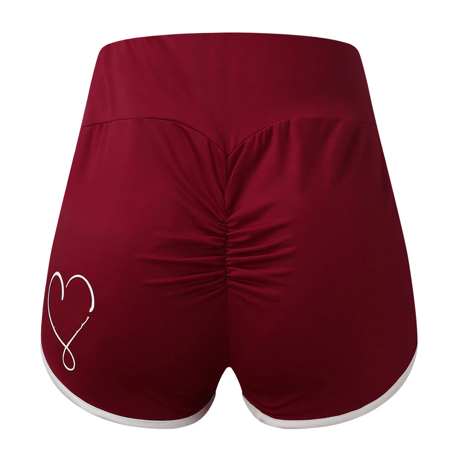 Популярные женские повседневные эластичные шорты с тепловым принтом с высокой талией и эффектом пуш-ап, шорты для фитнеса и йоги, тянущиеся спортивные шорты для бега и спортзала # T2P