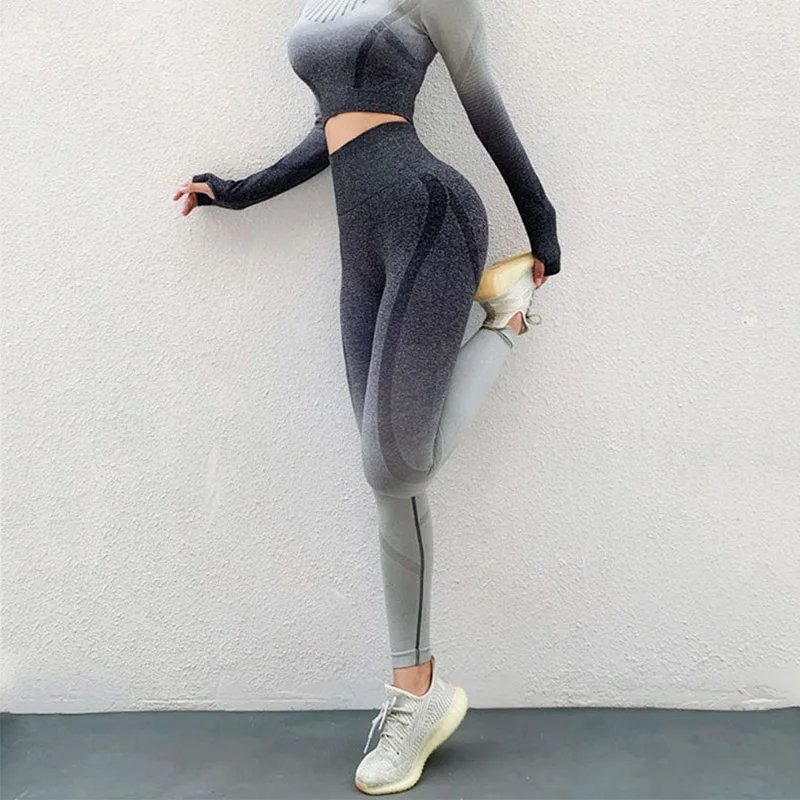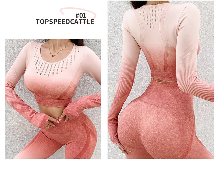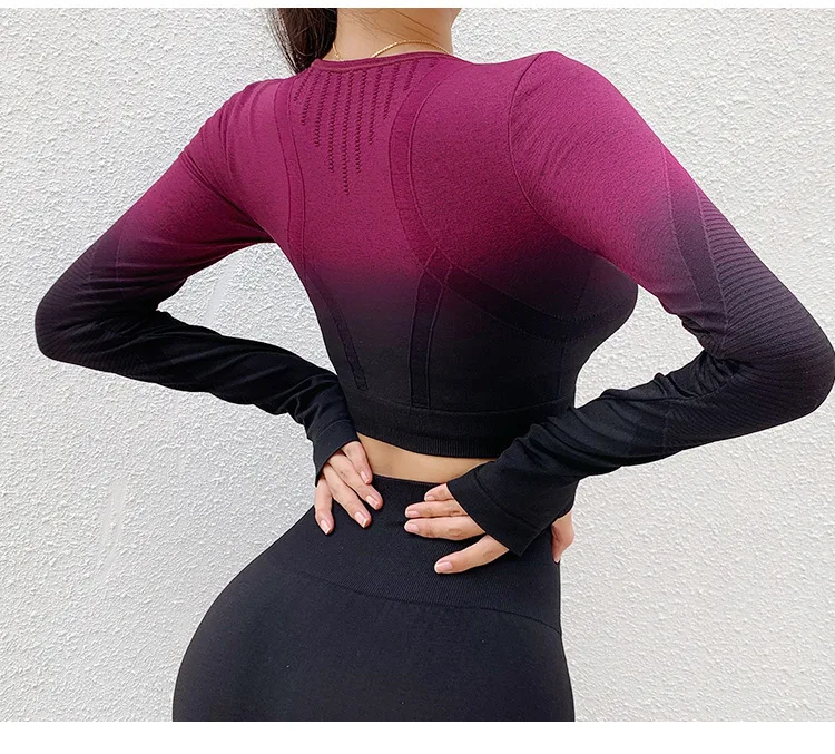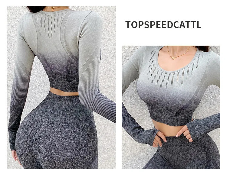 Новинка 2 шт. бесшовный Женский спортивный комплект Ombre укороченн...
