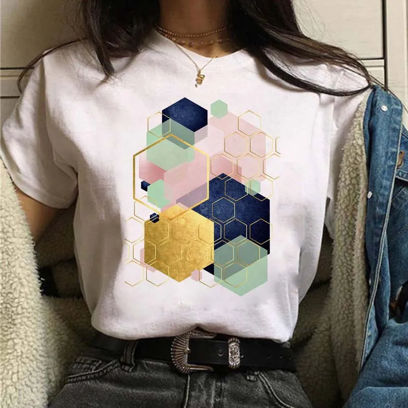 Женская футболка с геометрическим принтом, коротким рукавом и графическим принтом