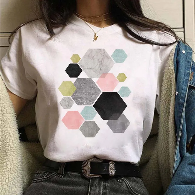 Женская футболка с геометрическим принтом, в стиле Харадзюку 90-х