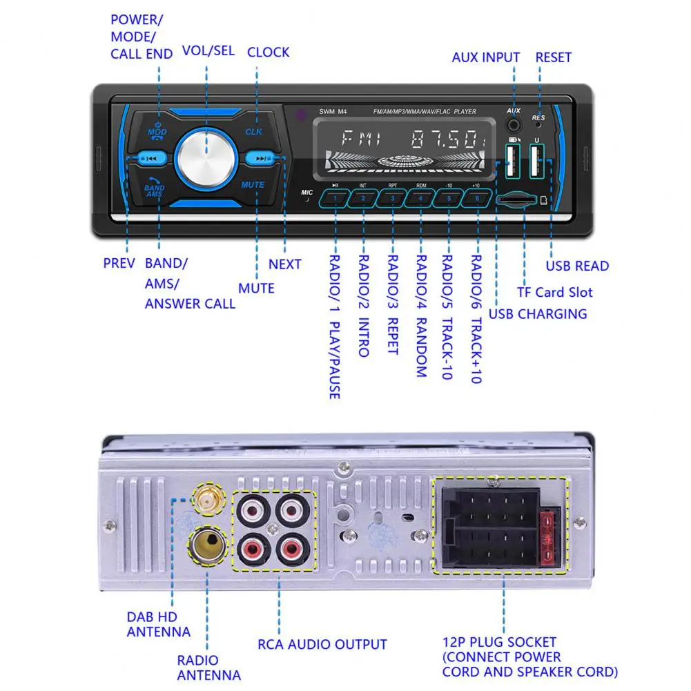 M-4 громкой связи высокой четкости DAB MP3 плеер универсальный Bluetooth USB AUX FM AM RDS DAB радиоприемник автомобиля модификации аксессуар