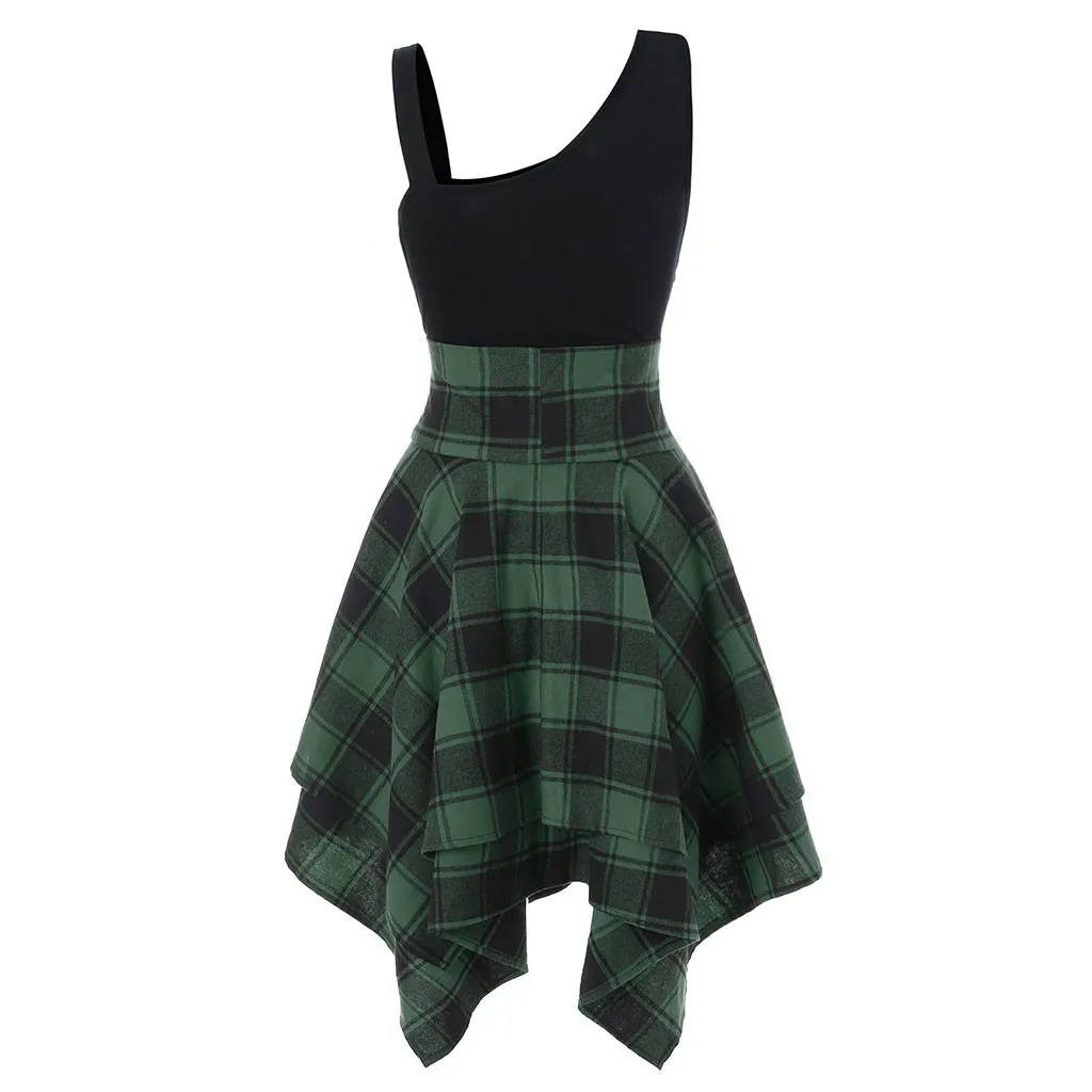 Женское асимметричное платье, повседневное длинное клетчатое платье без рукавов, с открытыми плечами и перекрестной шнуровкой, # t2g