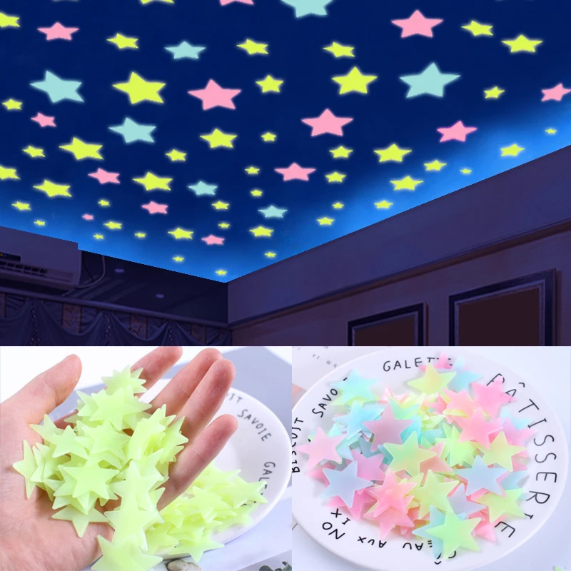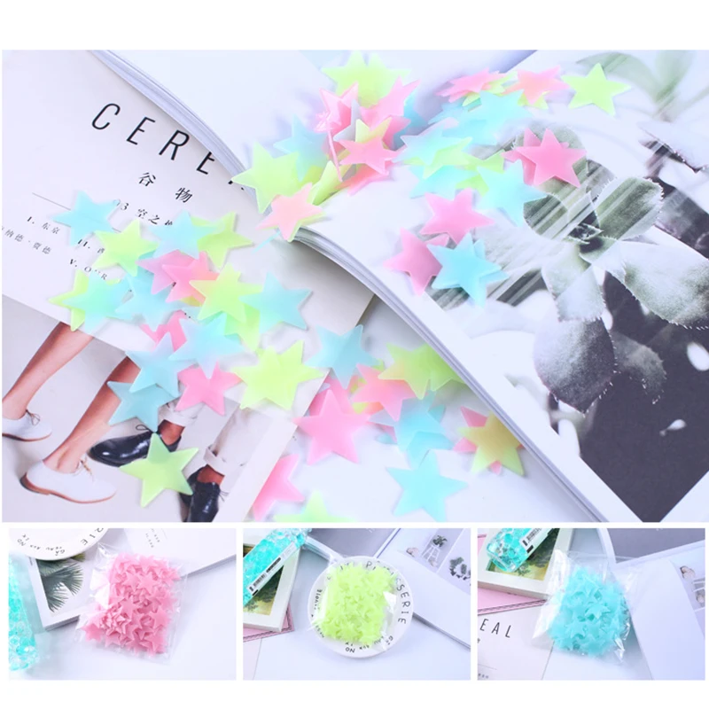 100 шт. светящаяся Наклейка на стену s светится в темноте звезды наклейка наклейки для детских комнат красочная флуоресцентная Наклейка на стену s домашний декор