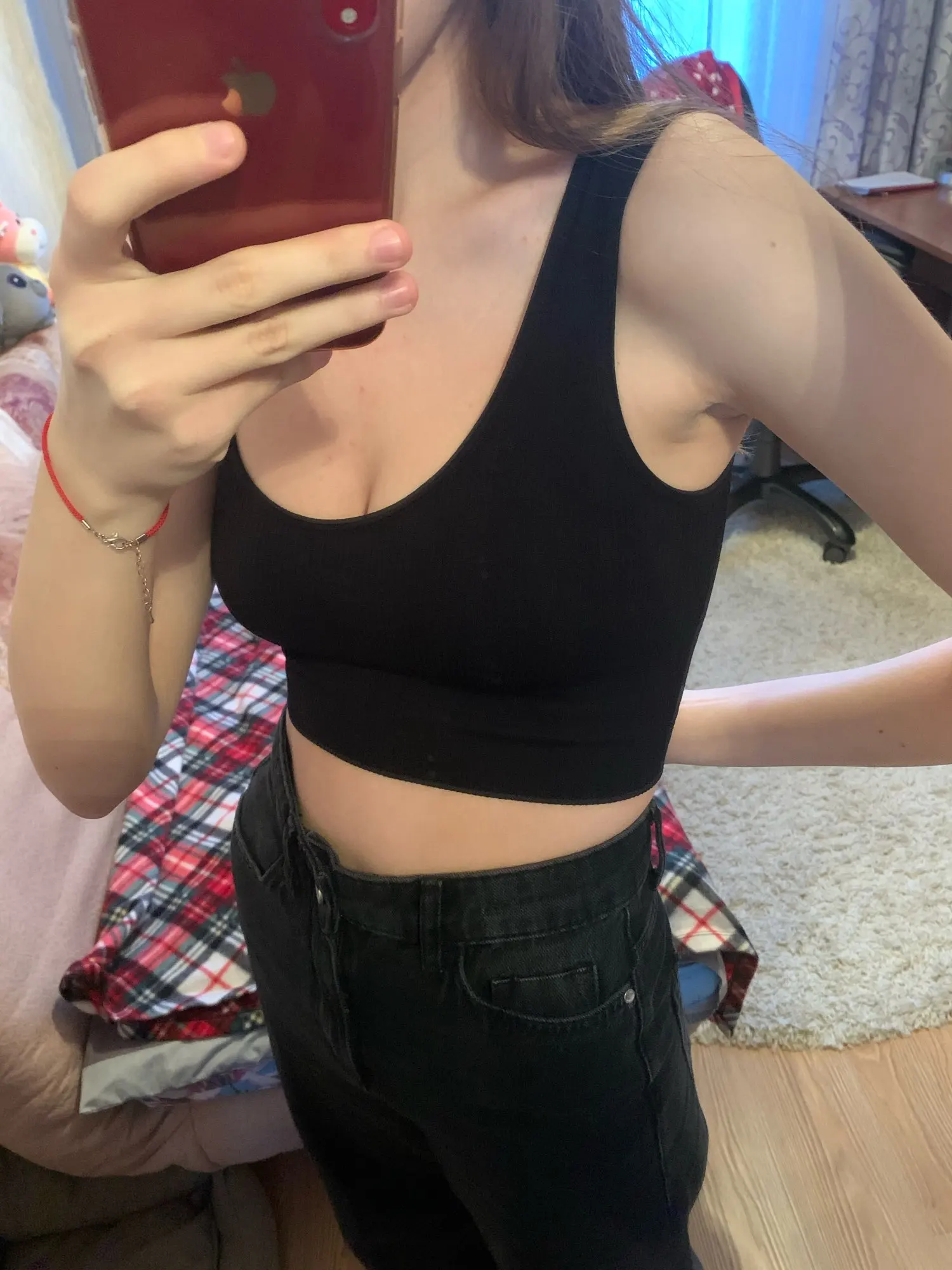 Хороший топик для дома/повседневной носки Брала в магазине три топа, в одинаковом размере и цвете, только разного фасона, и смело могу сказать, что они все крутые. На параметры 96-75-100, рост 170 и вес 65 кг отлично подошёл размер Л. Ткань очень приятная к телу, хорошо тянется, не кусается. Рекомендую к покупке ❤️