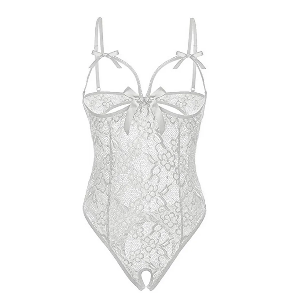 Женское Кружевное боди с открытой промежностью и открытой спиной