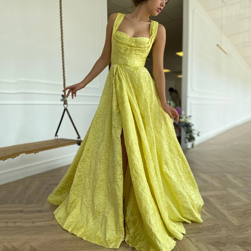 Платье-трапеция для выпускного вечера UZN, жаккардовое Атласное Вечернее платье до пола с высоким разрезом и Боковым Разрезом, праздничное платье в саудовской аравии