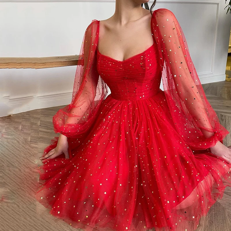 UZN ТРАПЕЦИЕВИДНОЕ короткое платье для выпускного вечера, милое Пышное Платье с рукавами, расшитое блестками, вечернее платье, платье для празднования в Саудовской Аравии, на заказ