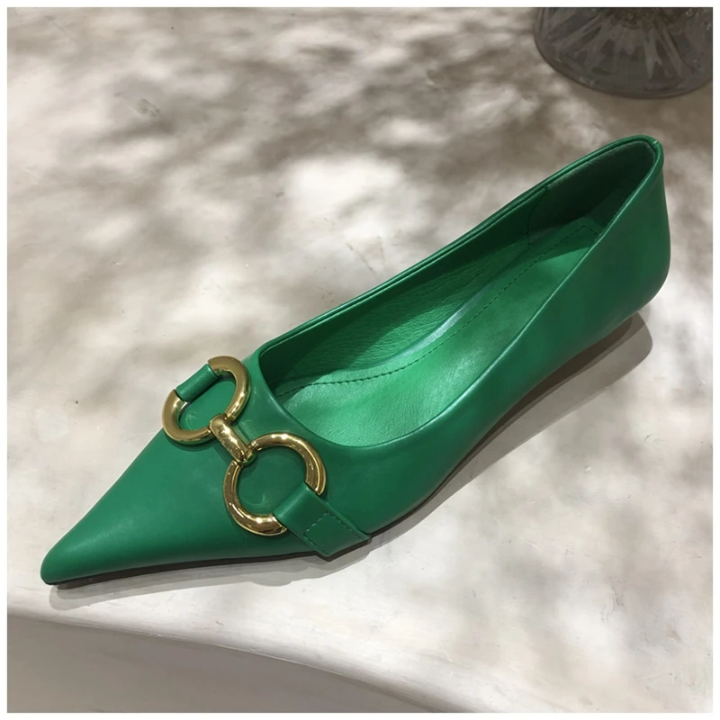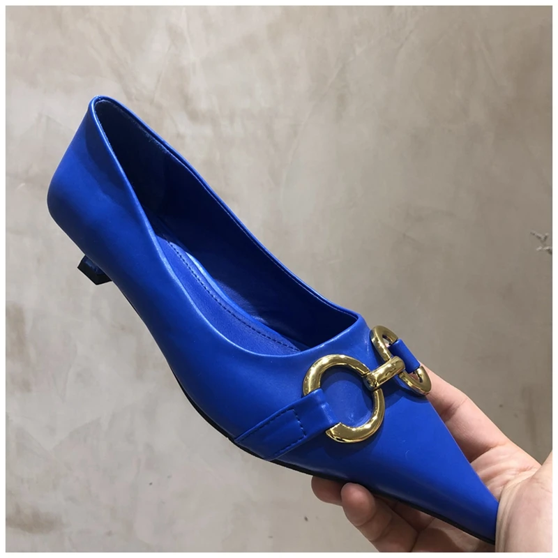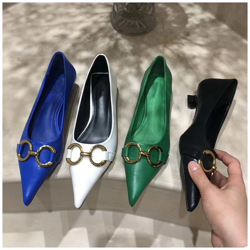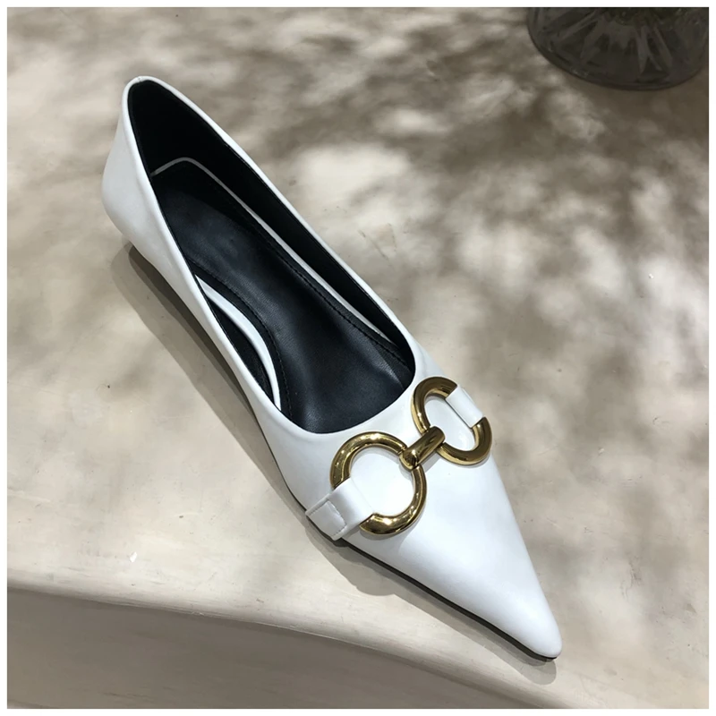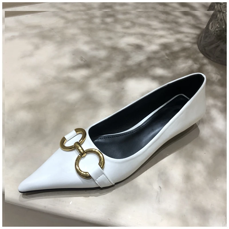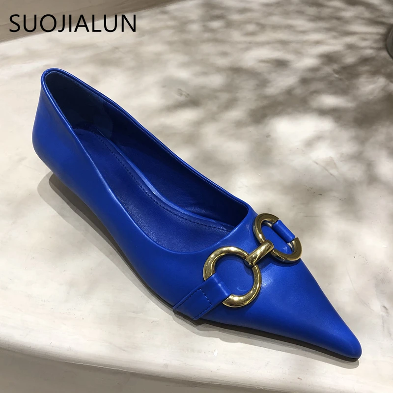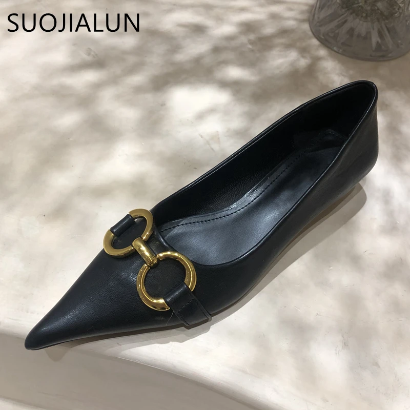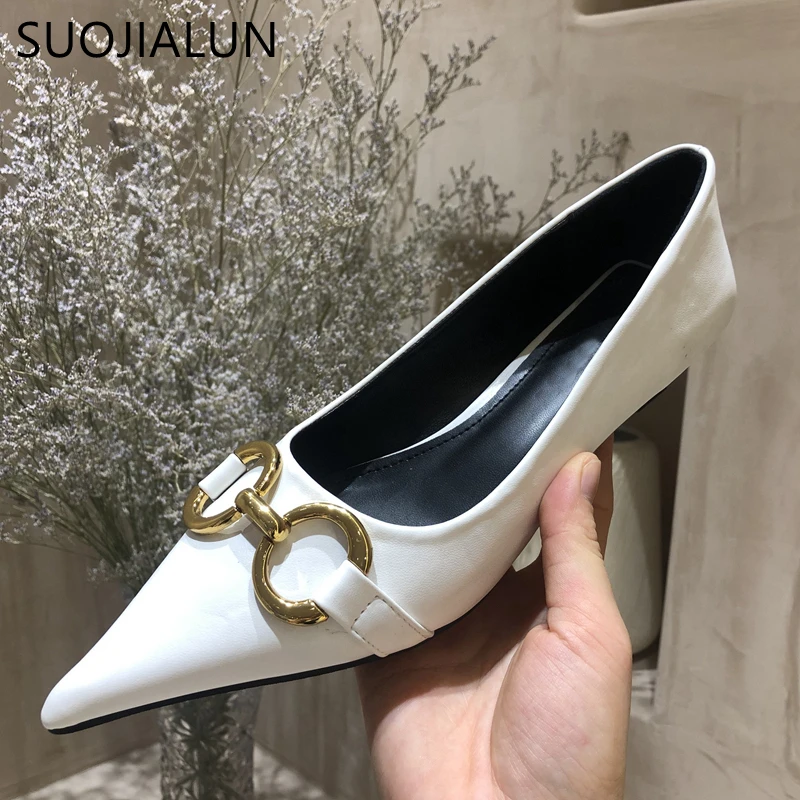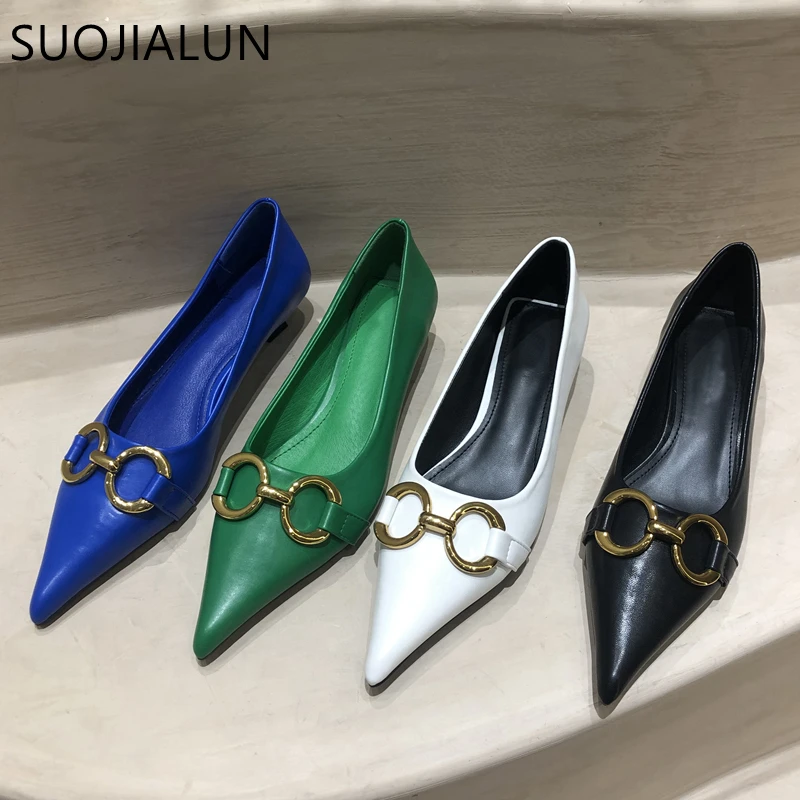 Женские туфли-лодочки SUOJIALUN, с металлической пряжкой, на низком каблуке, с острым носком, без застежек, весна 2021