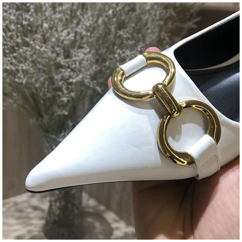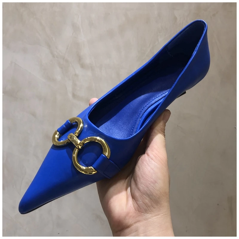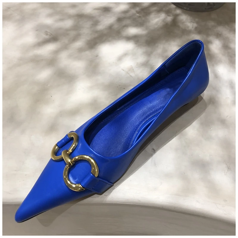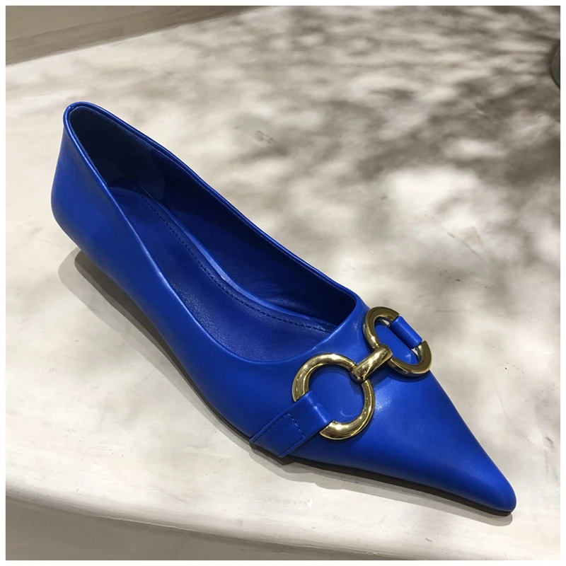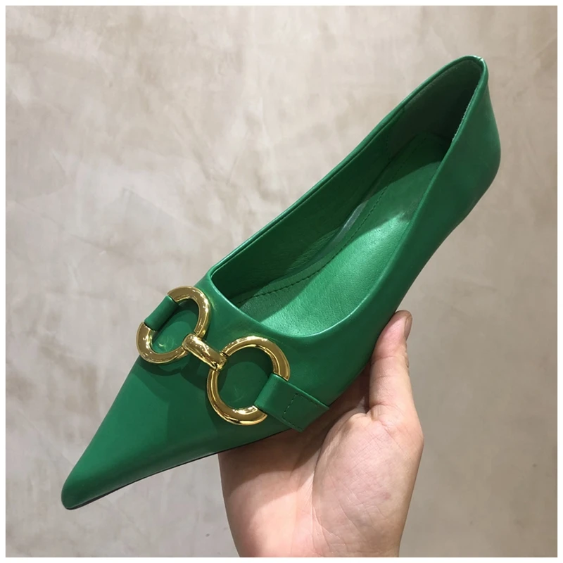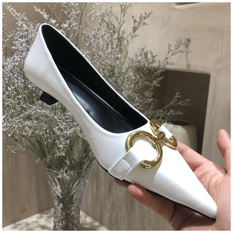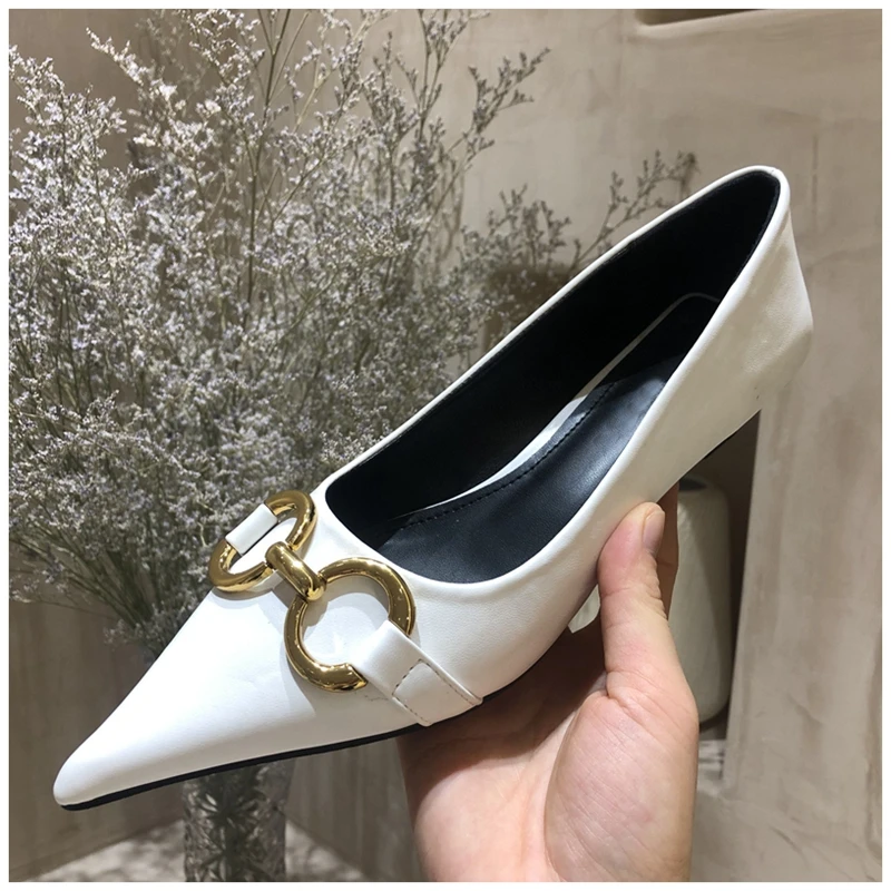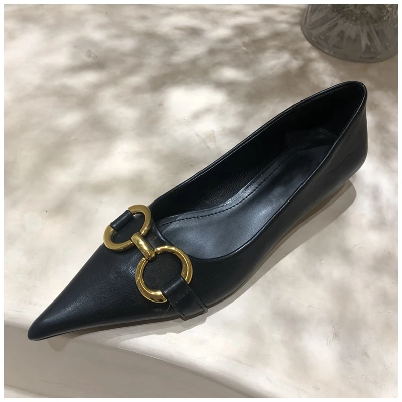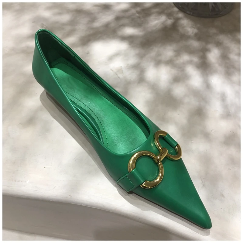 Женские туфли-лодочки SUOJIALUN, с металлической пряжкой, на низком каблуке, с острым носком, без застежек, весна 2021