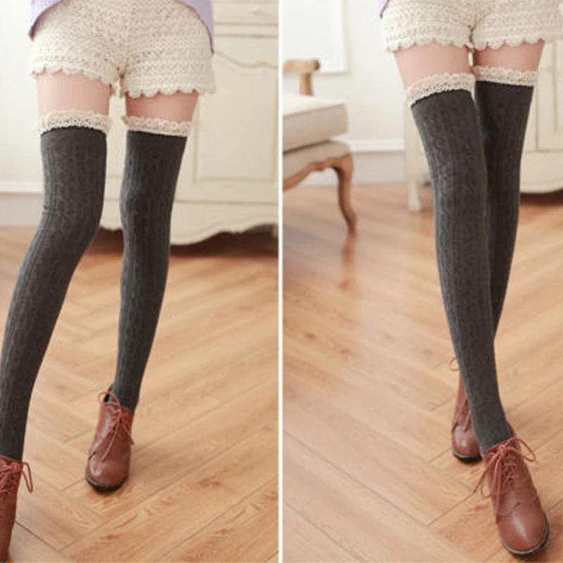 Новинка, модные женские вязаные удлиненные сапоги, чулки выше колена, теплый длиной до бедра, нижнее белье, женские носки, Чулочные изделия