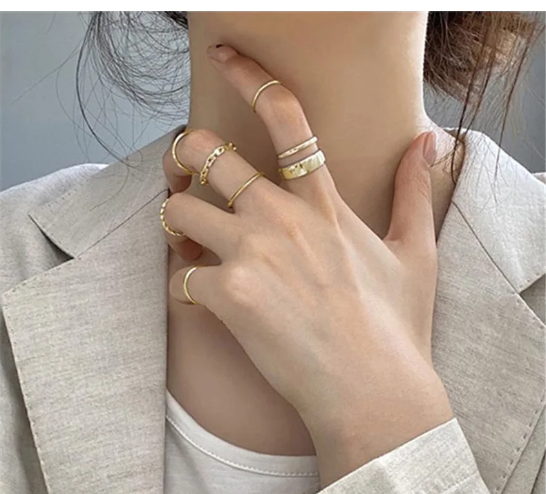 7 шт.компл. корейский модный смешанный минималистичный набор колец ...