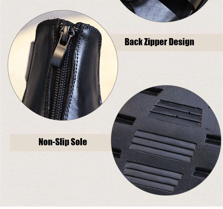 Женские ботильоны из натуральной кожи OUKAHUI, черные ботинки из на...