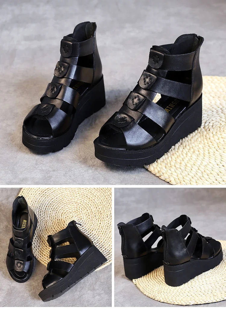 Размера плюс 35-43, элегантные черные сандалии-гладиаторы из натура...