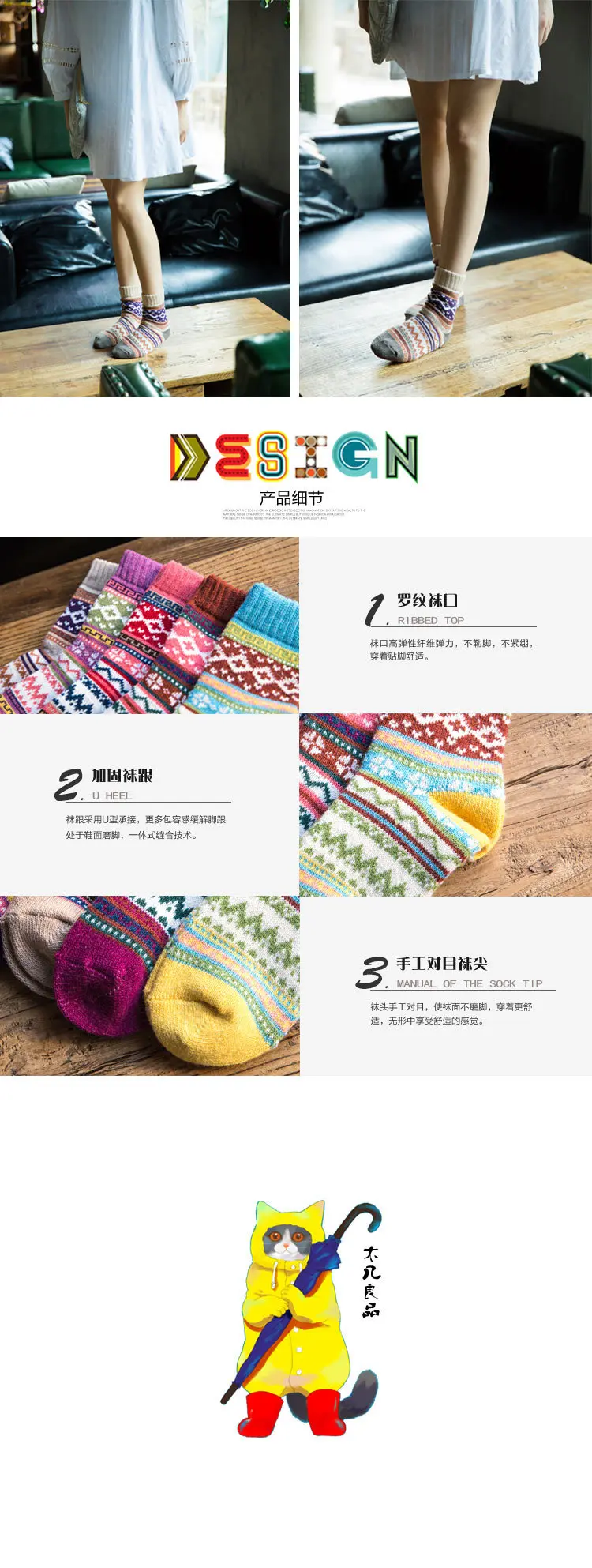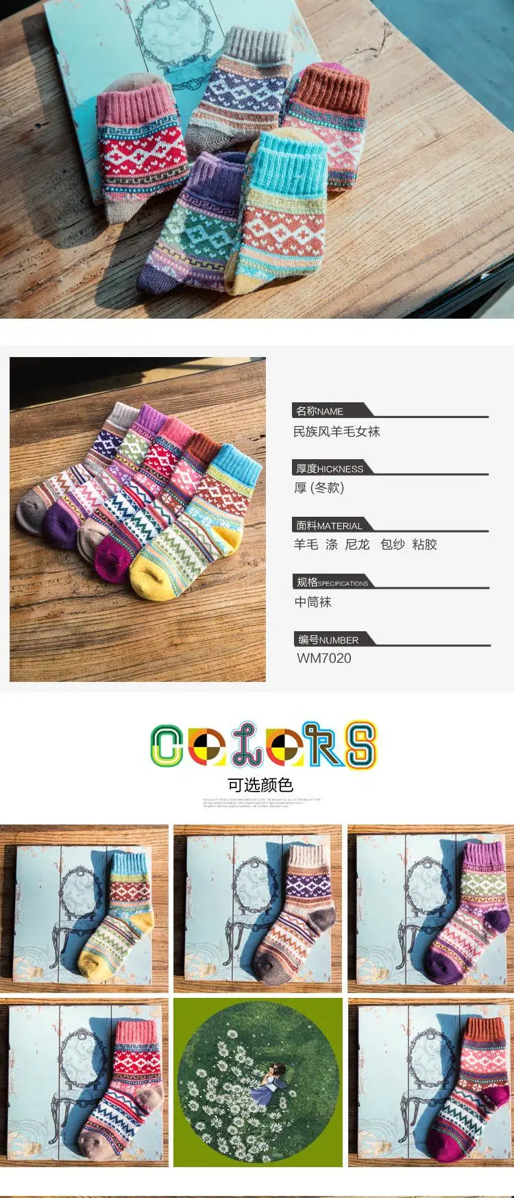 Женские носки в богемном стиле в этническом стиле на осень и зиму, утепленные теплые шерстяные кашемировые плотные носки для снежной погоды, модные женские носки