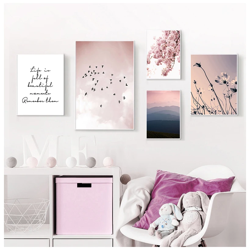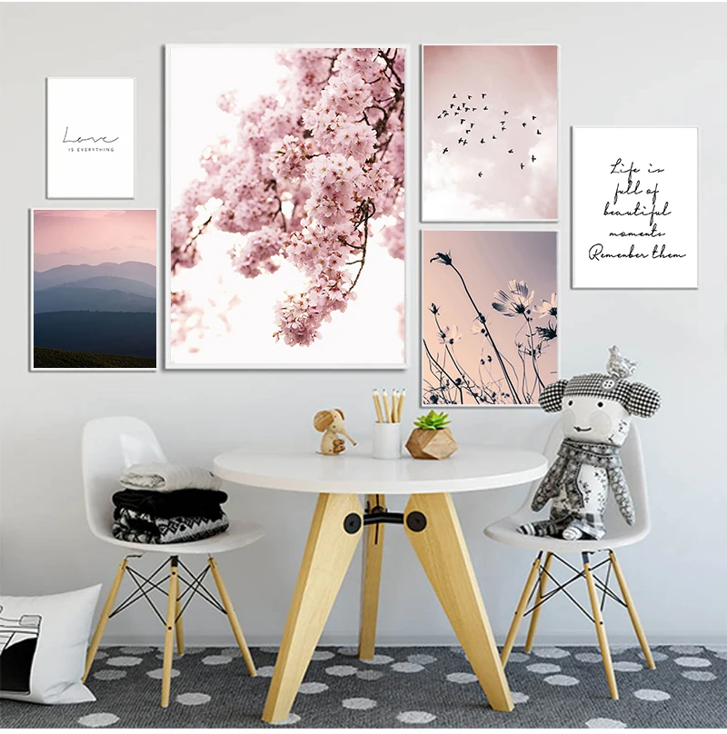 Скандинавский фламинго, цветок, настенное искусство, холст, розовый...