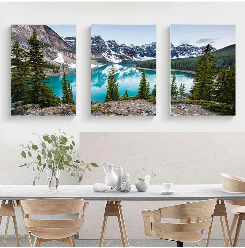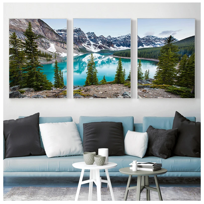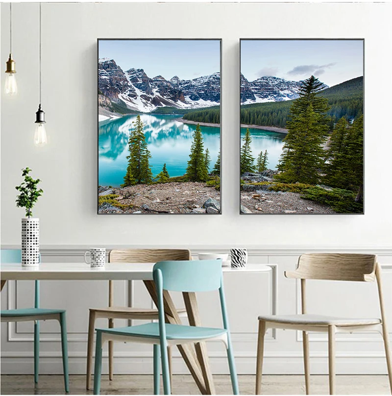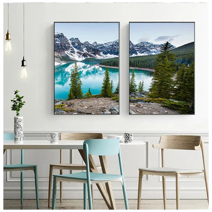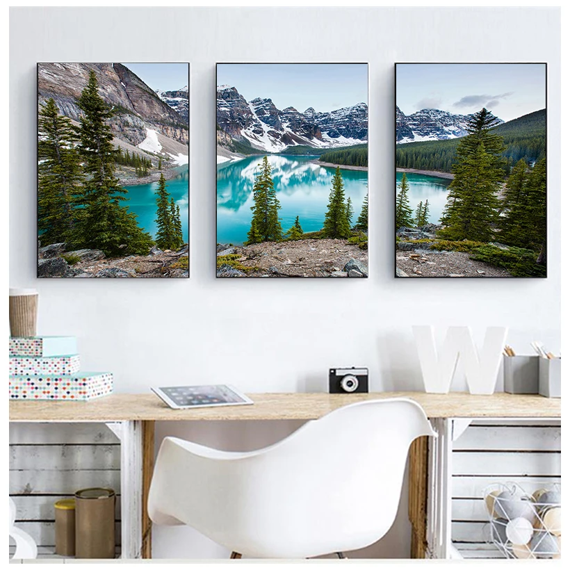 Скандинавский пейзаж, горы, озеро, холст, картины, украшение для до...
