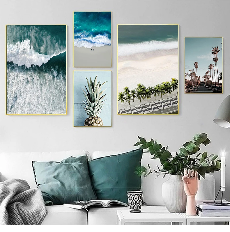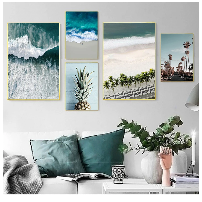 Скандинавская декоративная картина, настенный постер с принтом океана, волн, морского пляжа, пейзажа, Картина на холсте, декор для гостиной в скандинавском стиле