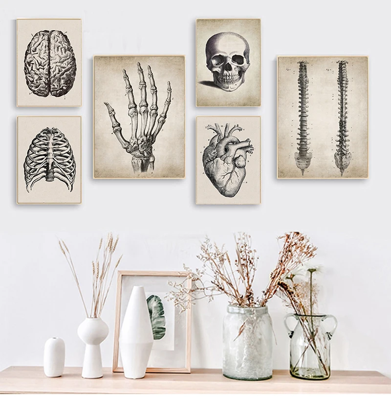 Мозг палец Череп Анатомия человека винтажный настенный плакат Арт холст картины Nordic Плакаты и принты настенные картины для Гостиная