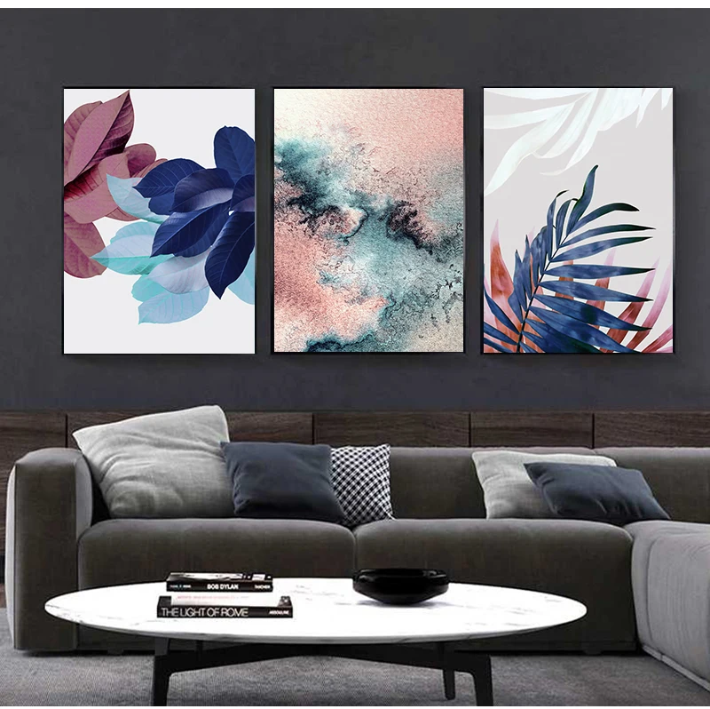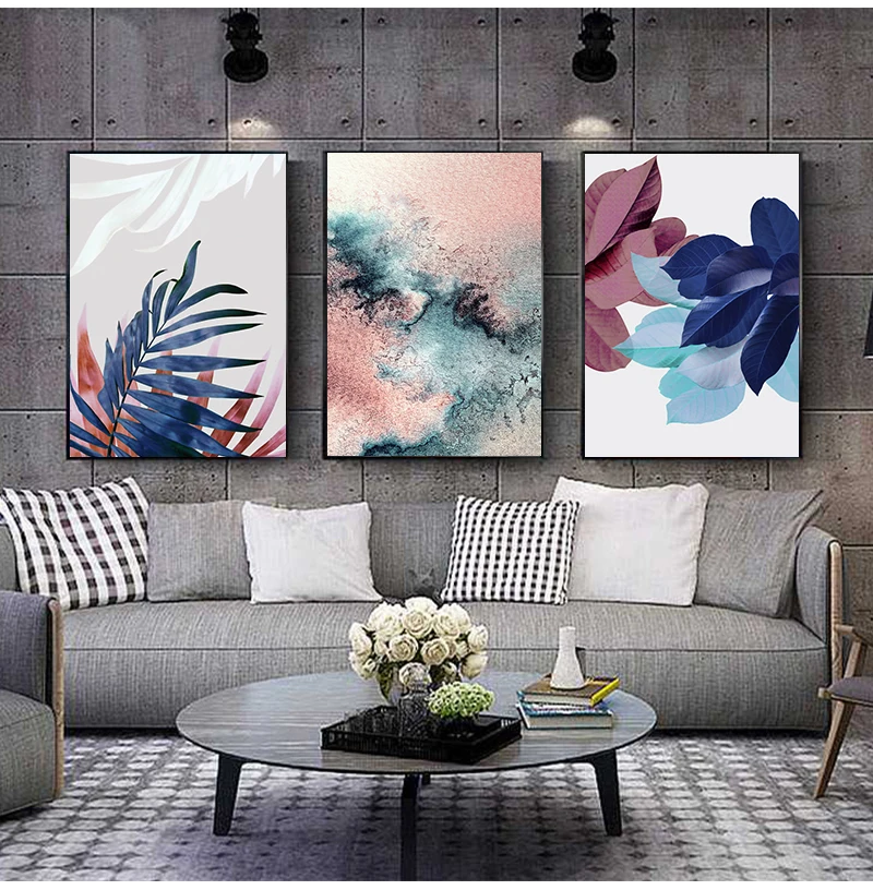 Лист Wall Art Абстрактная акварель фотографии холст картина розовое Декор тропический Плакаты и принты настенные картины