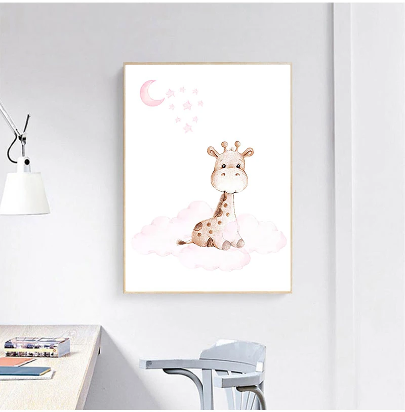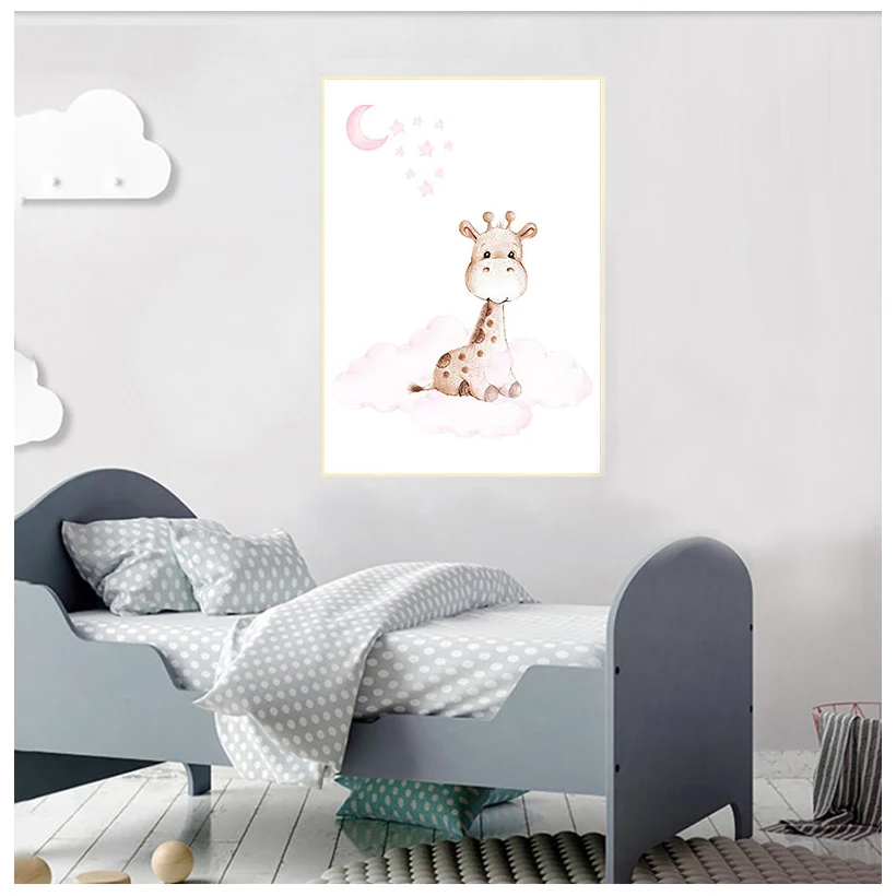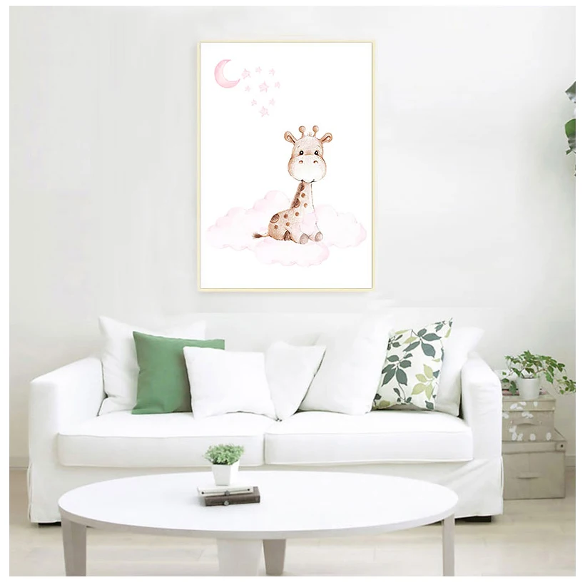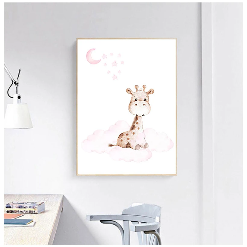 Настенная картина для детской комнаты, рисунок жирафа, кролика, оле...