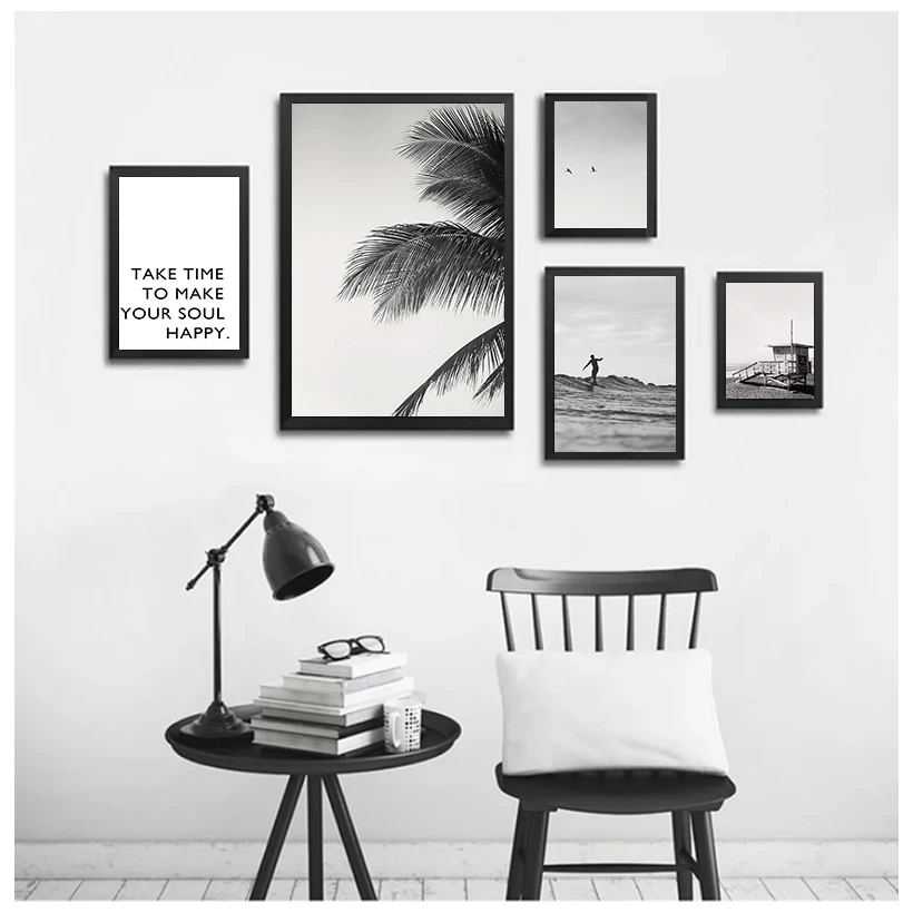 Настенные художественные принты галереи, черно-белая пальма, пейзаж океана для серфинга, Вдохновляющие постеры и Настенный декор для гостиной