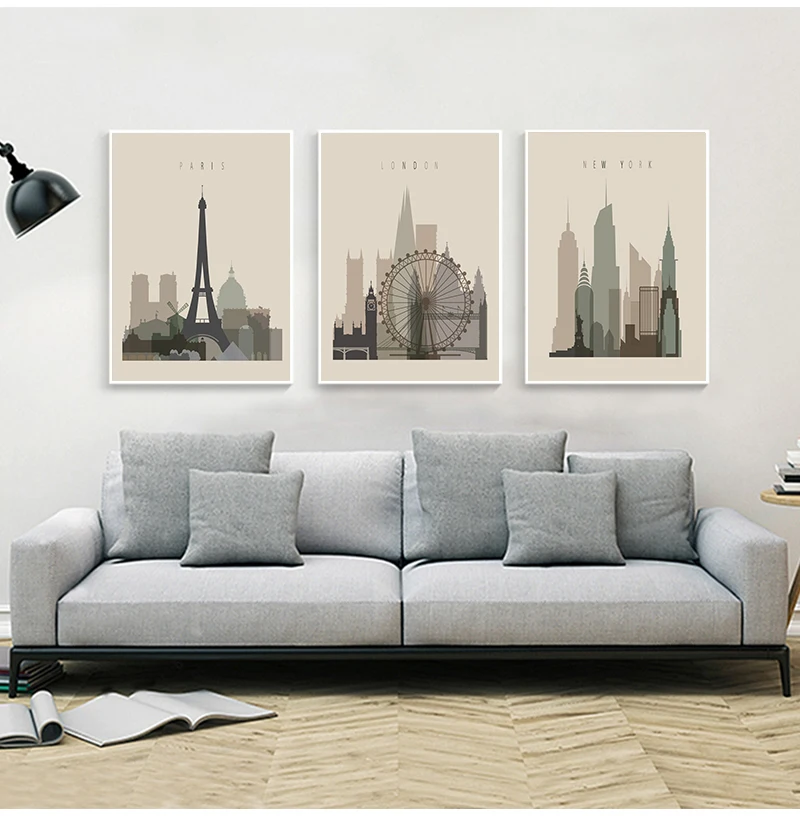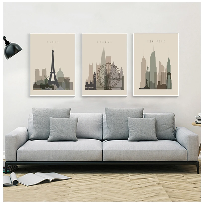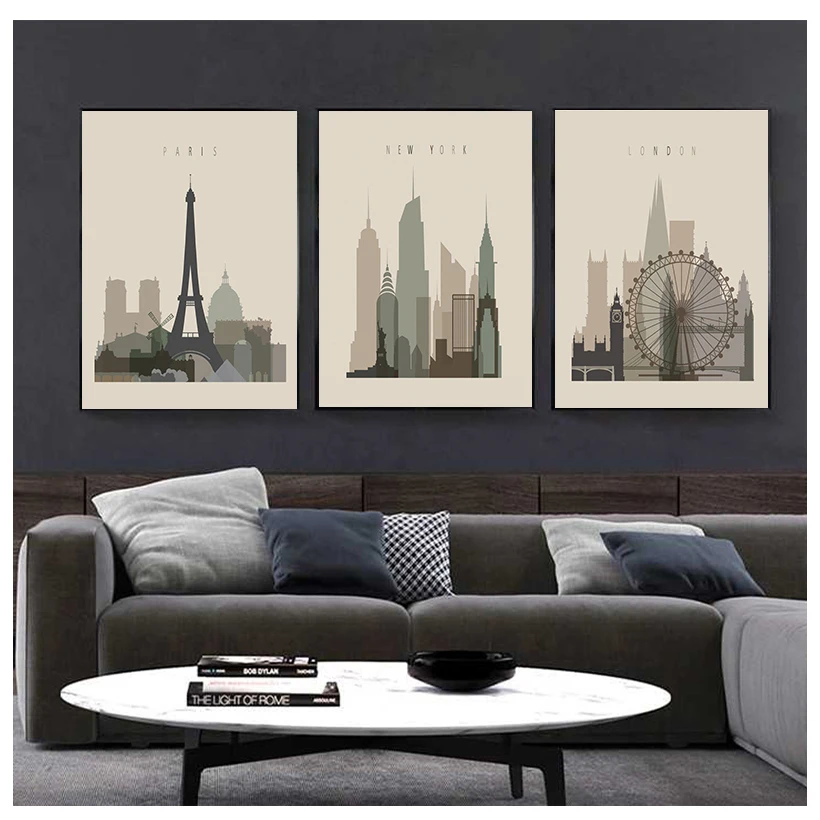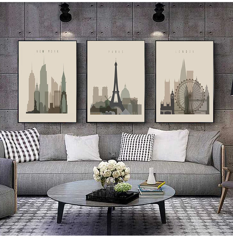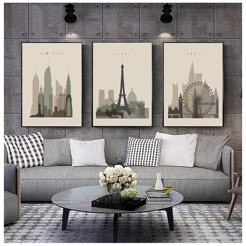 Ретро-плакаты Париж Лондон Нью-Йорк настенные художественные принты Акварельные картины на холсте винтажные картины украшение дома спальни
