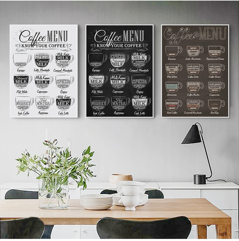 Скандинавская кофейное меню настенные картины Художественная печать...