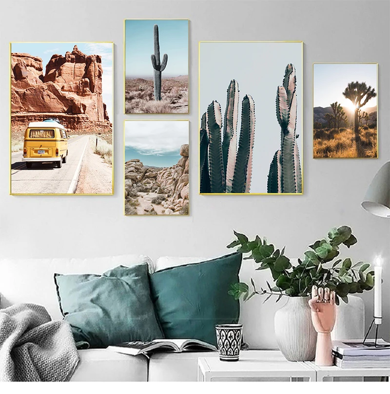 Плакат на холсте с изображением пустыни кактуса, пейзаж в скандинавском стиле, природное дерево, настенная живопись, Картина на холсте, декоративная картина, домашний декор