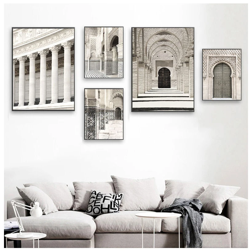 Арабская мечеть, Марокканское здание, картина, исламский ВИНТАЖНЫЙ ПЛАКАТ, религия, пейзаж, Настенная картина, украшение для дома