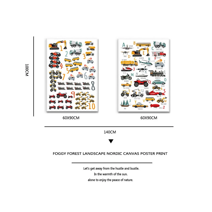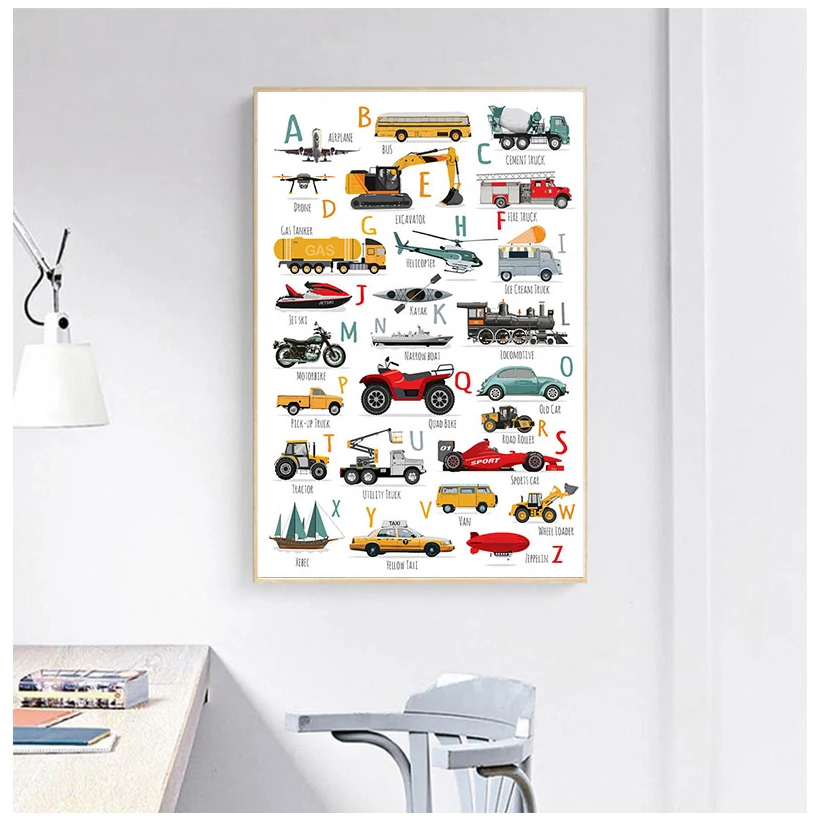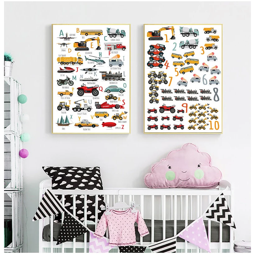Мультяшная игрушка плакат с алфавитом с принтом цифр и букв; С изображение обучения Печать Дети плакат для детской стены искусства Мальчик номер Декор