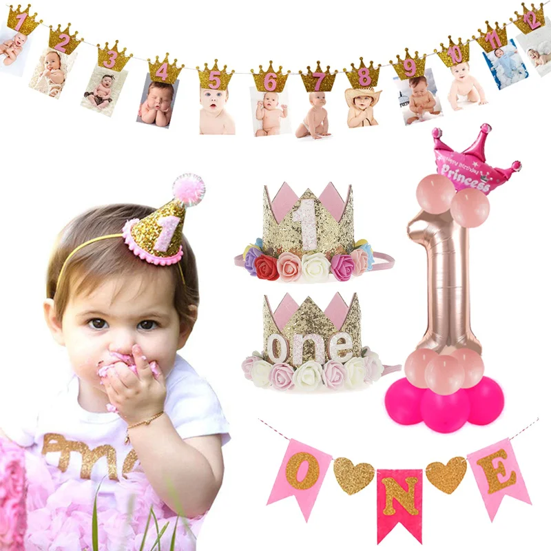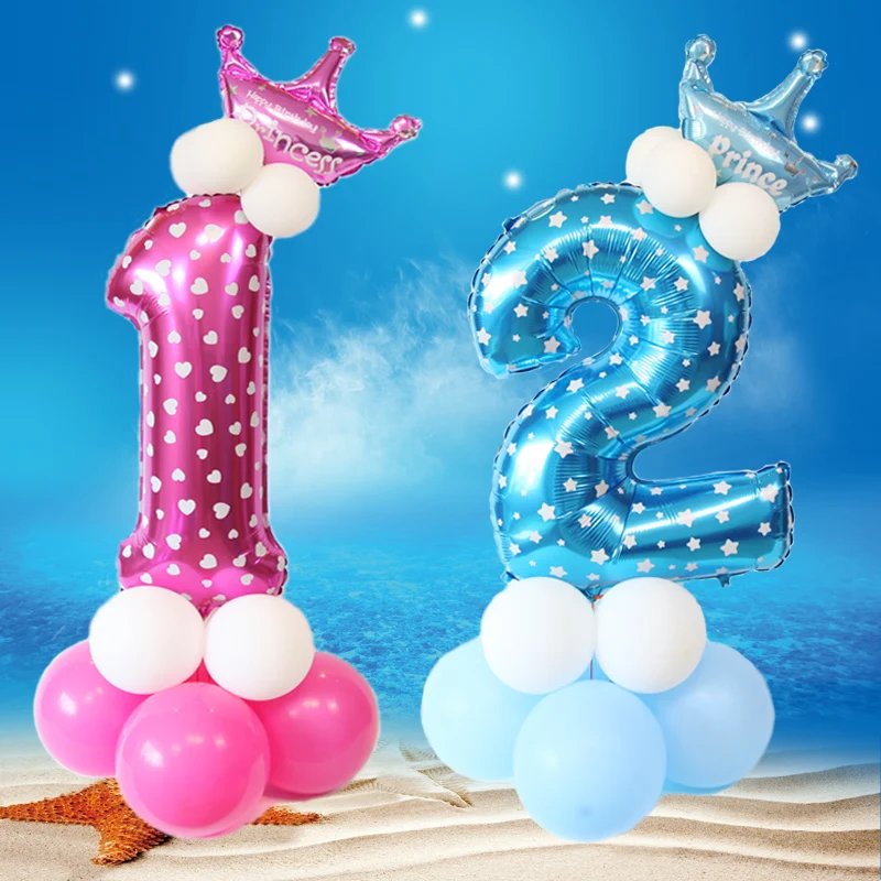 Украшение для 1-го дня рождения для детей, гирлянда с короной для мальчиков и девочек, воздушные шары для первого дня рождения, товары для вечеринки