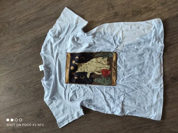 майка очень крутая! хоть и синтетика, но я не вспотела. принт впечатан в майку и я даже рада что он немного тусклый. материал тянеться, если вы хотите чтобы было оверсайз, берите на 1-2 размера больше, я S но взяла L, так что все супер, спасибо :)