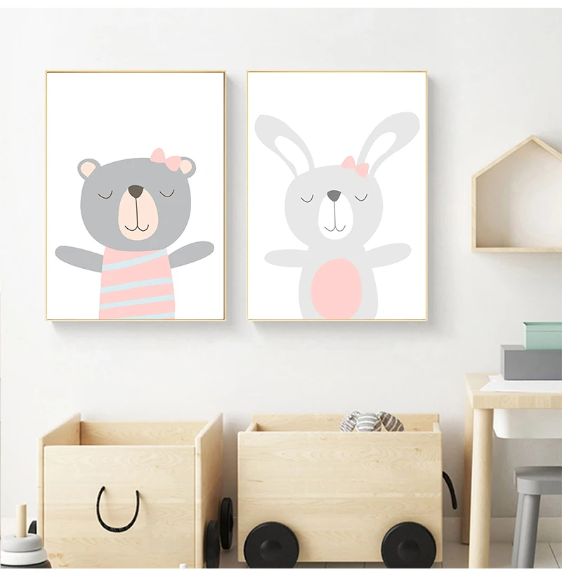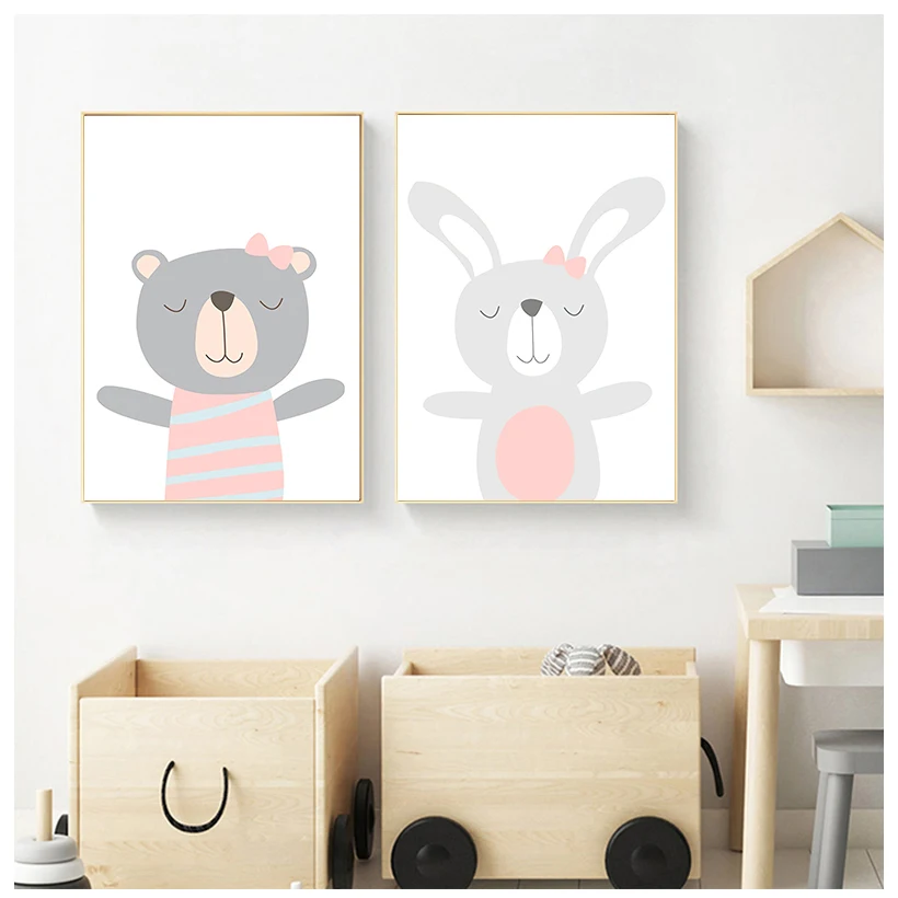 Мультфильм животных холст картины принты для детской личное имя пользовательские постер на стену Скандинавская для маленьких девочек украшения комнаты