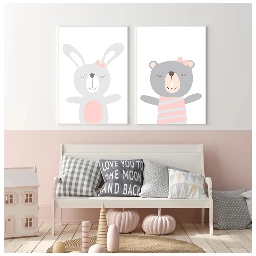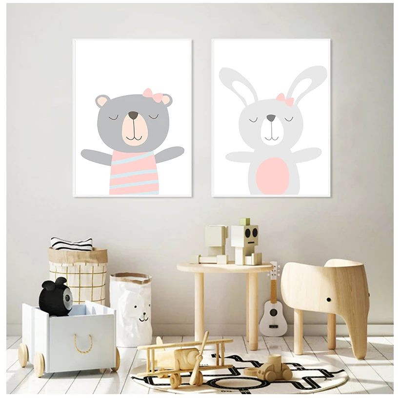 Детская стена искусство холст минималистская Ванна животных Розовый...