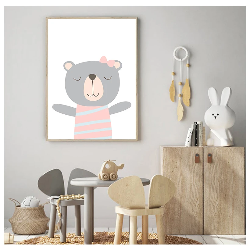 Скандинавская Картина на холсте с изображением медведя лисы, мультя...