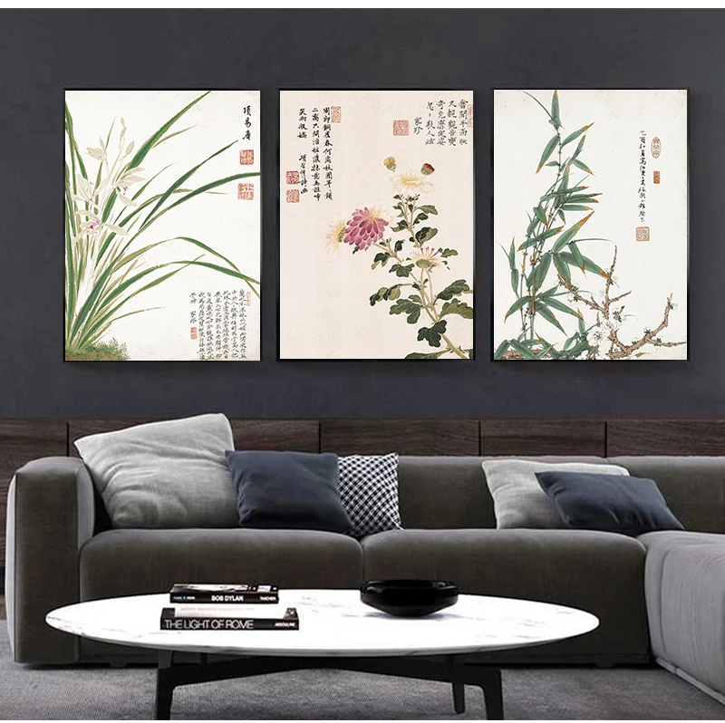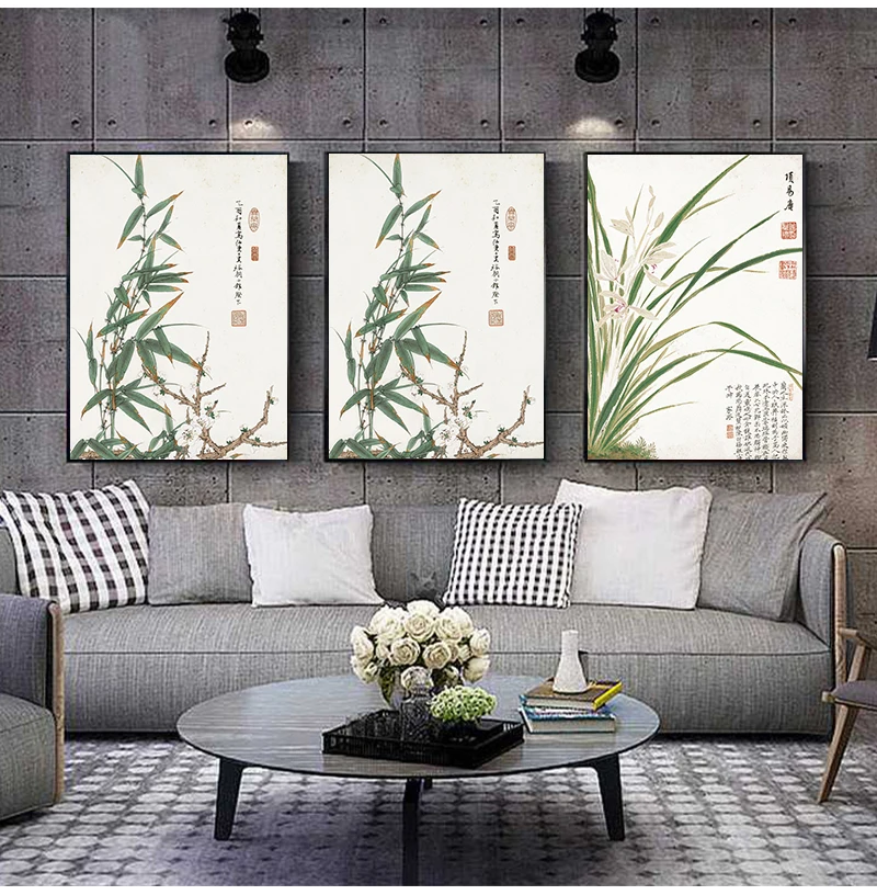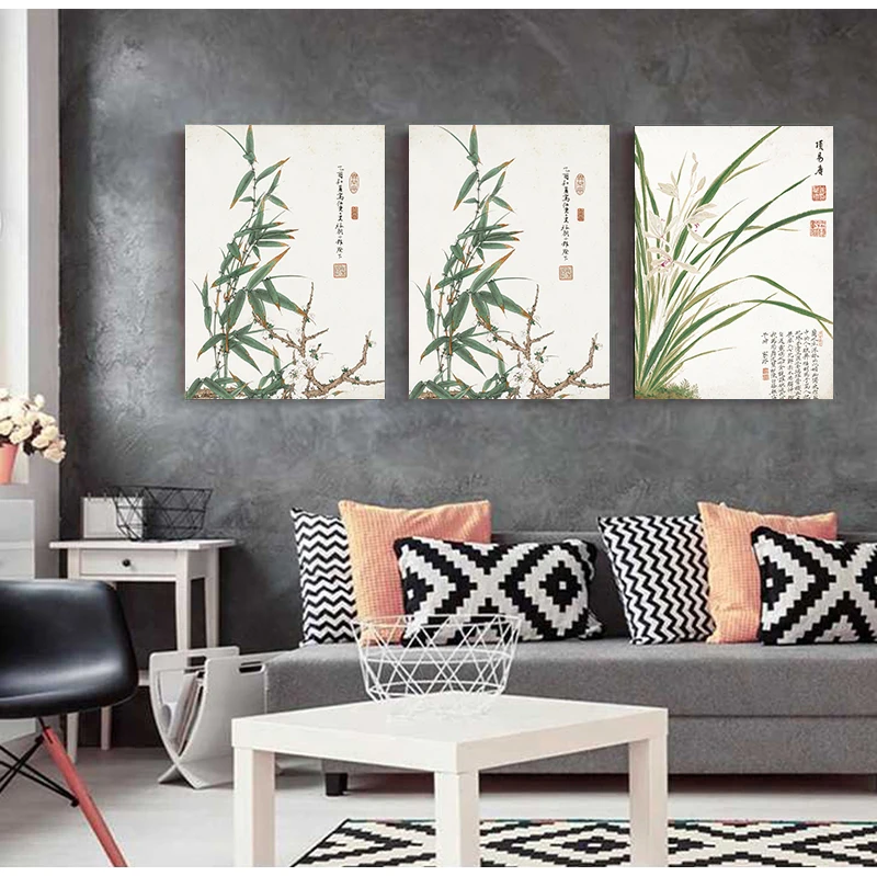 Винтажный художественный китайский Стиль Meilan бамбука и плакат с надписями принт дома Холст Картина без рамки стены искусства украшения, изготовленные по индивидуальному заказу