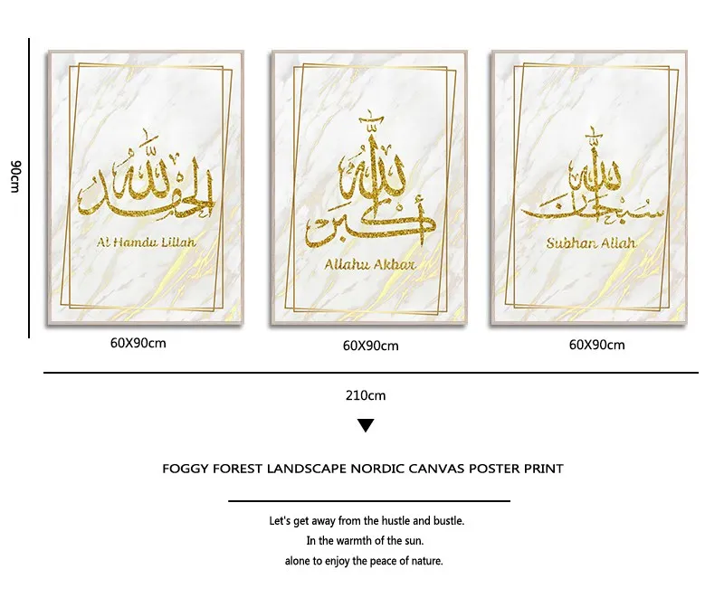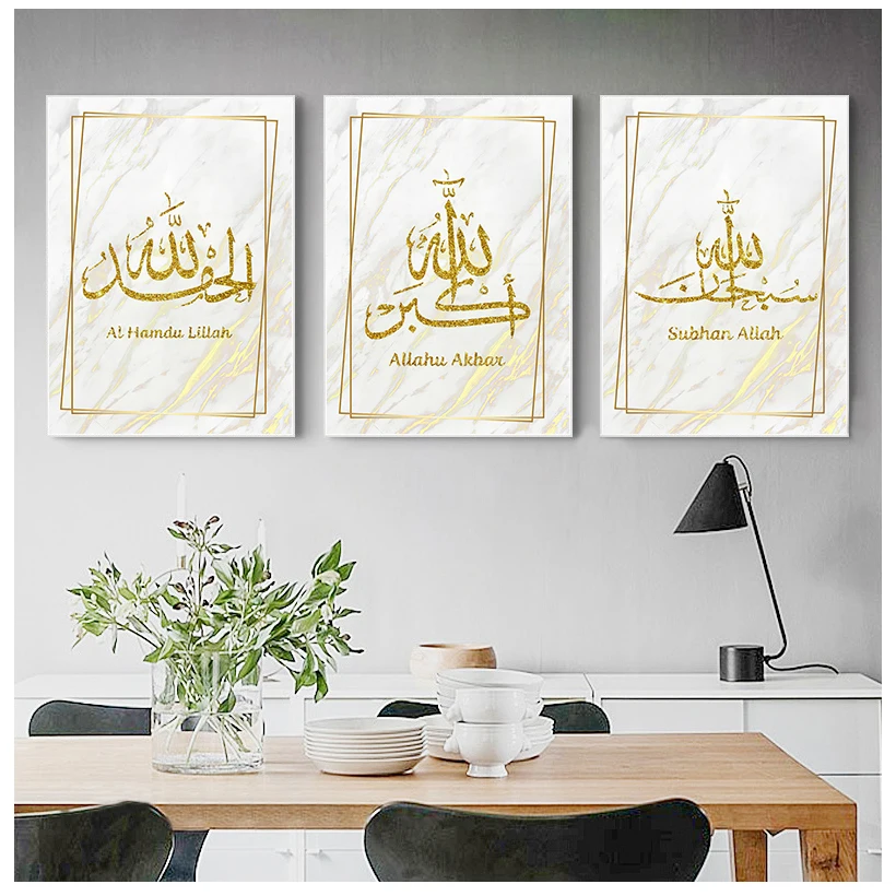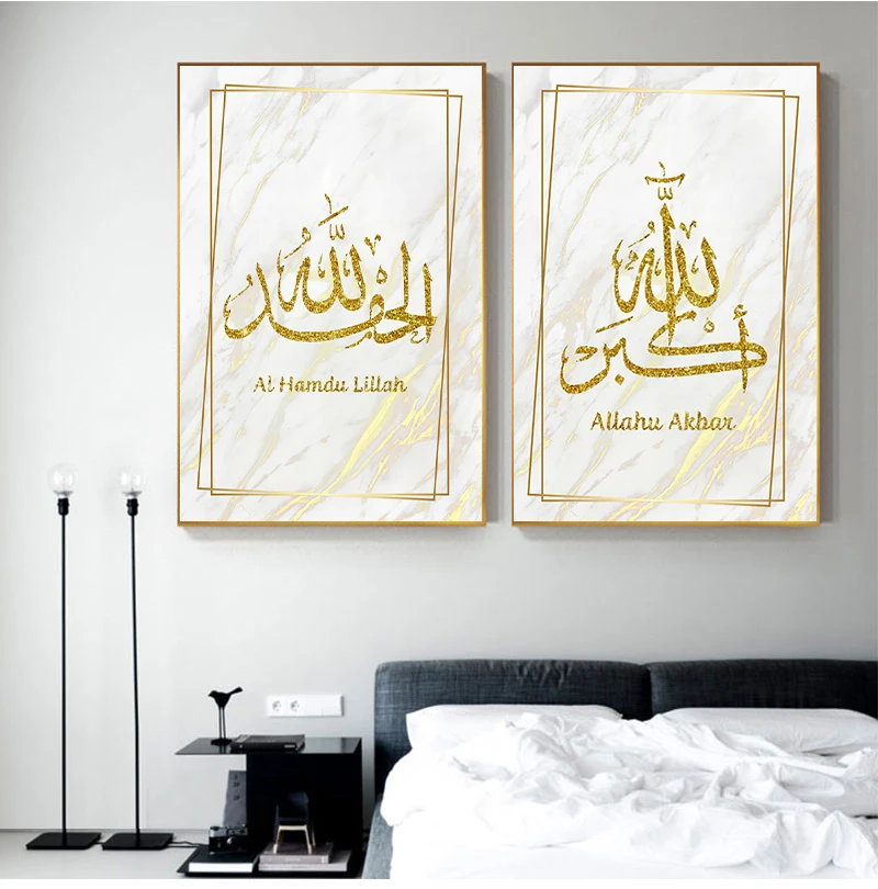 Исламская арабская каллиграфия золото Аллах акбар Alhamdulillah Аллах картины на холсте картина, печатный плакат картина мусульманских украшения