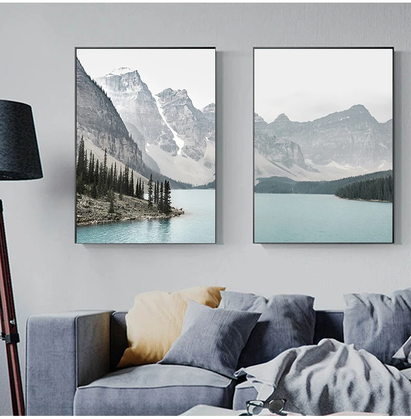Скандинавский пейзаж, горы, озеро, холст, картины, украшение для дома, гостиная, настенные картины, природный пейзаж, плакаты и принты